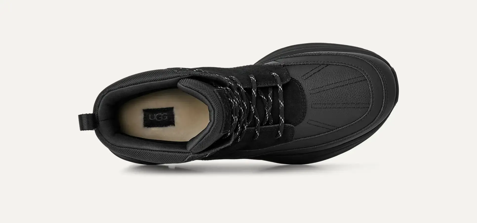 Ботинки выдерживают температуру до –20 °C и идеально подходят для повседневных прогулок, зимних поездок и холодных городских утр. Лаконичный дизайн, металлическая фурнитура и тиснёный логотип UGG® делают модель универсальной — её легко сочетать с джинсами, чиносами и пуховиком.