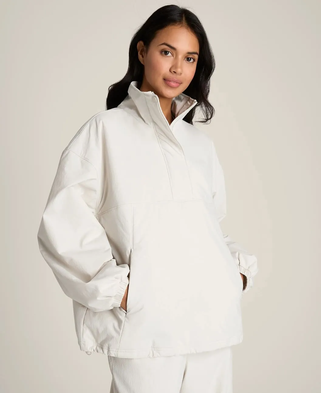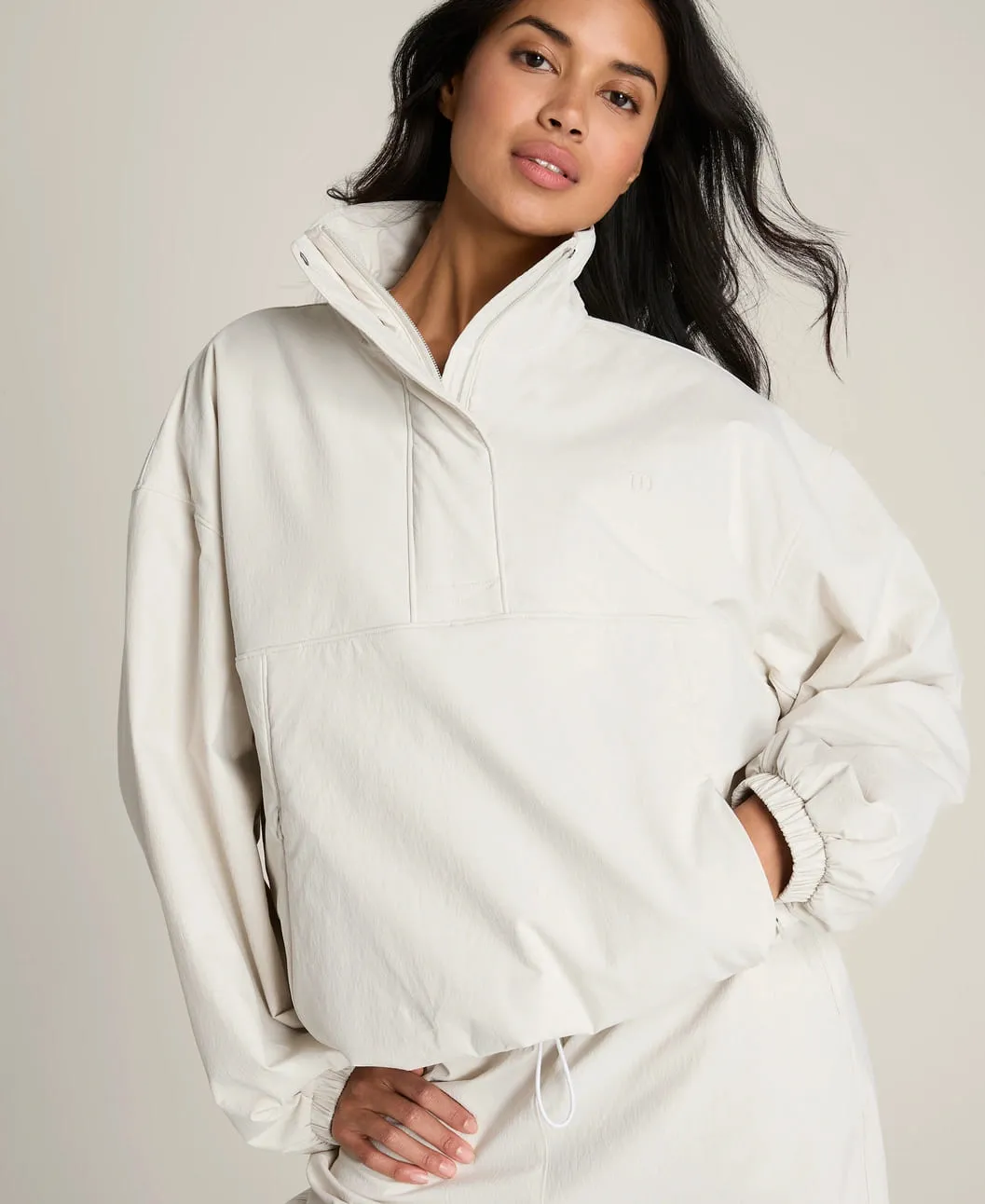 Nylon Lined Popover — современная женская куртка с минималистичным дизайном, созданная для комфорта и универсальности. Лёгкая, но достаточно плотная конструкция обеспечивает защиту и комфорт, а расслабленный силуэт позволяет легко сочетать её с различными слоями одежды.
