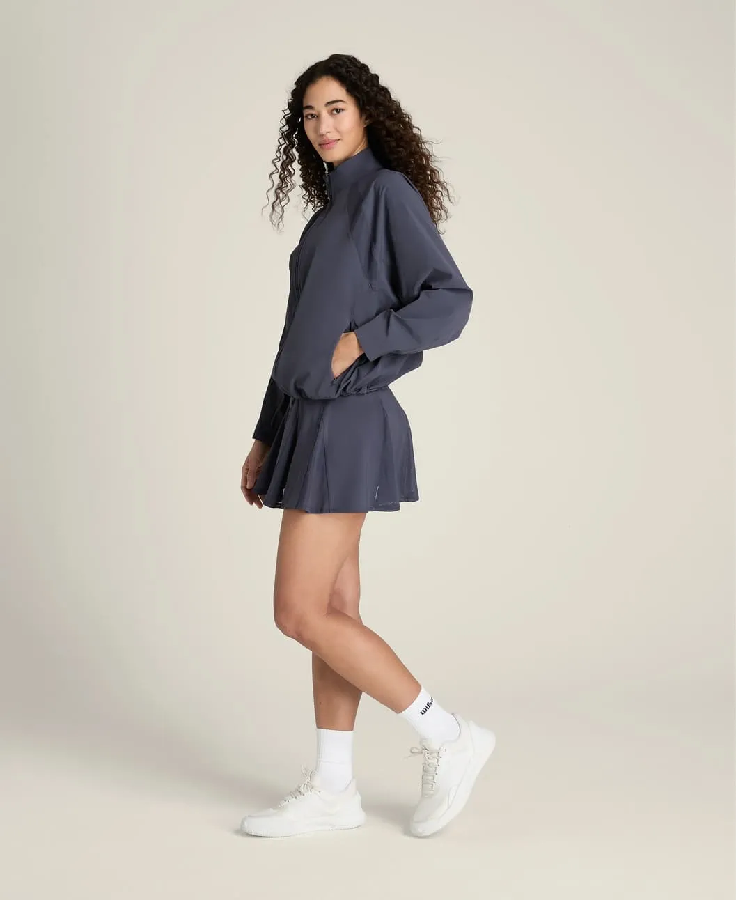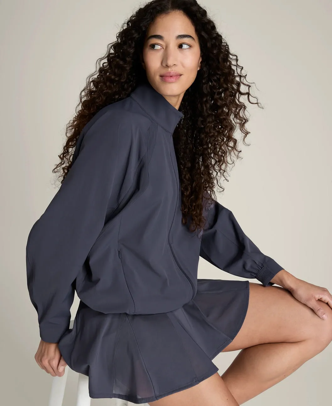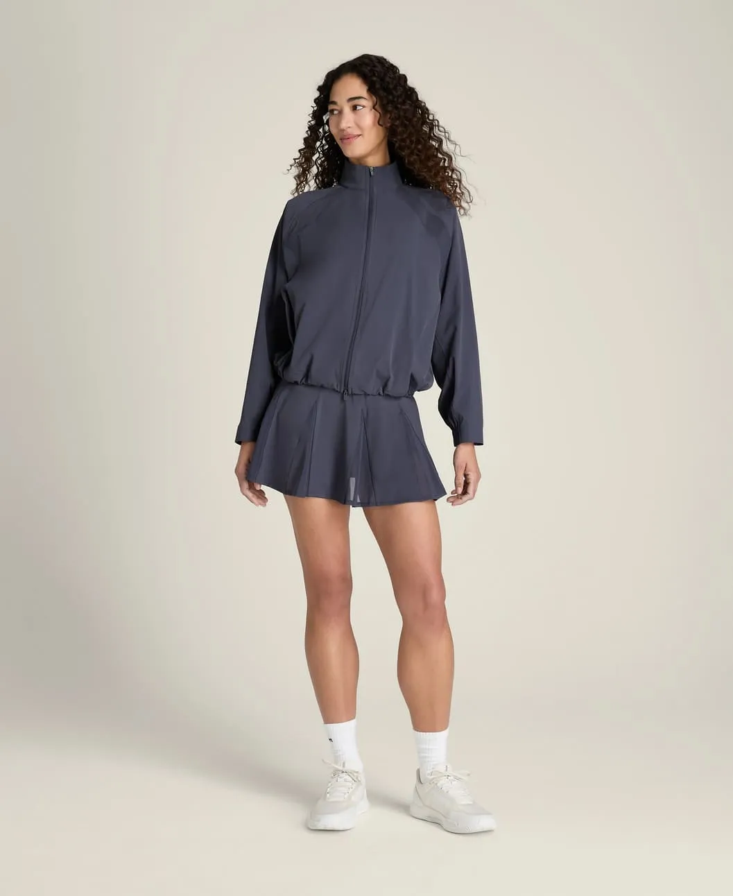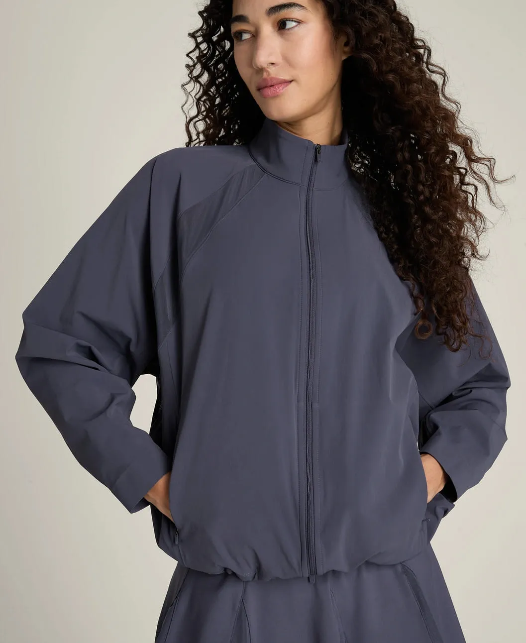 Свободный силуэт обеспечивает удобство и позволяет легко надевать куртку поверх тренировочной одежды. Конструкция с рукавами реглан обеспечивает естественную свободу движений и комфорт во время активности.