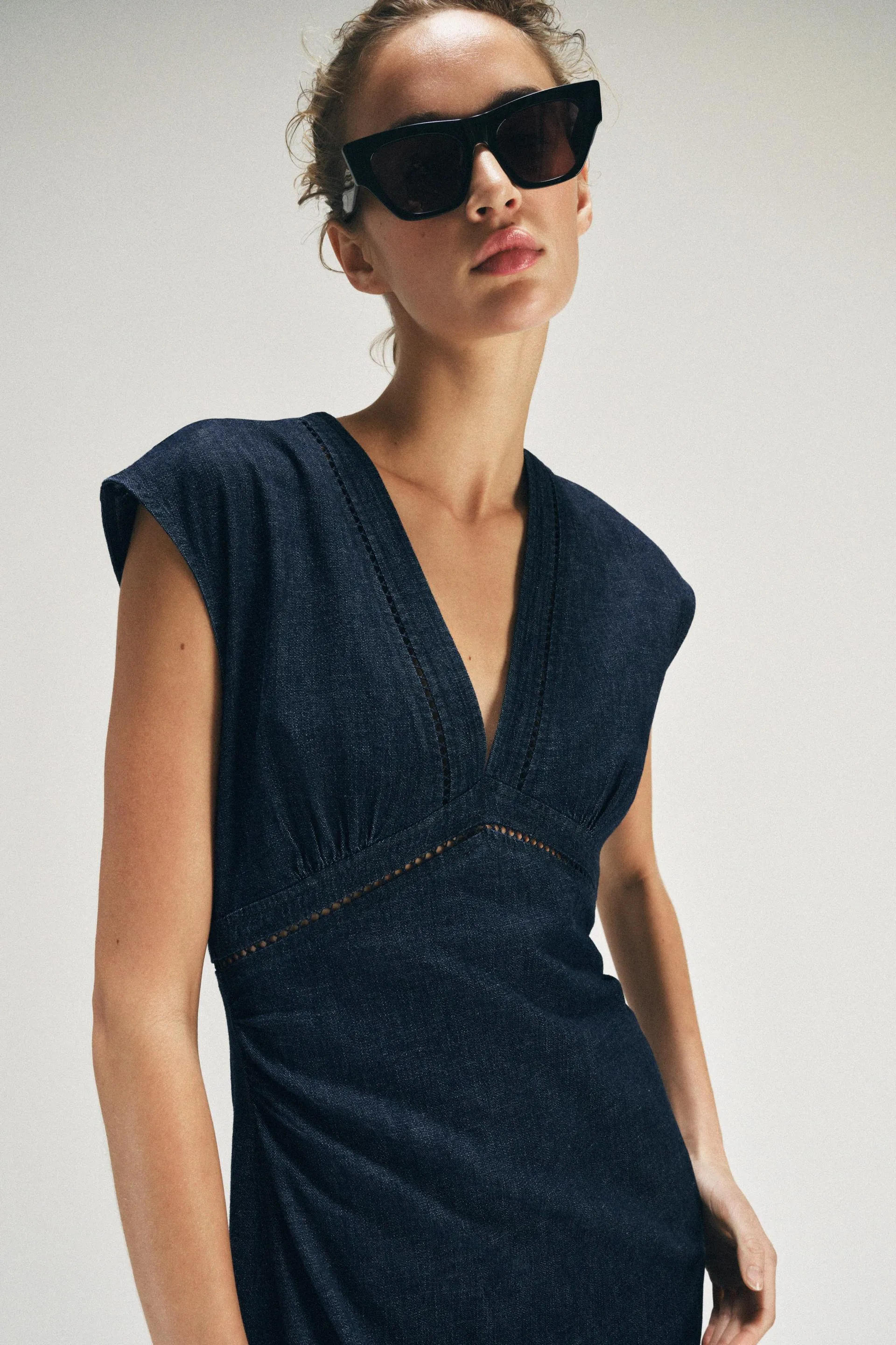 Lace Trim Midi Dress — воплощение лаконичной женственности и тихой элегантности. Чистый силуэт, натуральный хлопок и деликатная кружевная отделка создают образ, который выглядит дорого без лишнего шума.