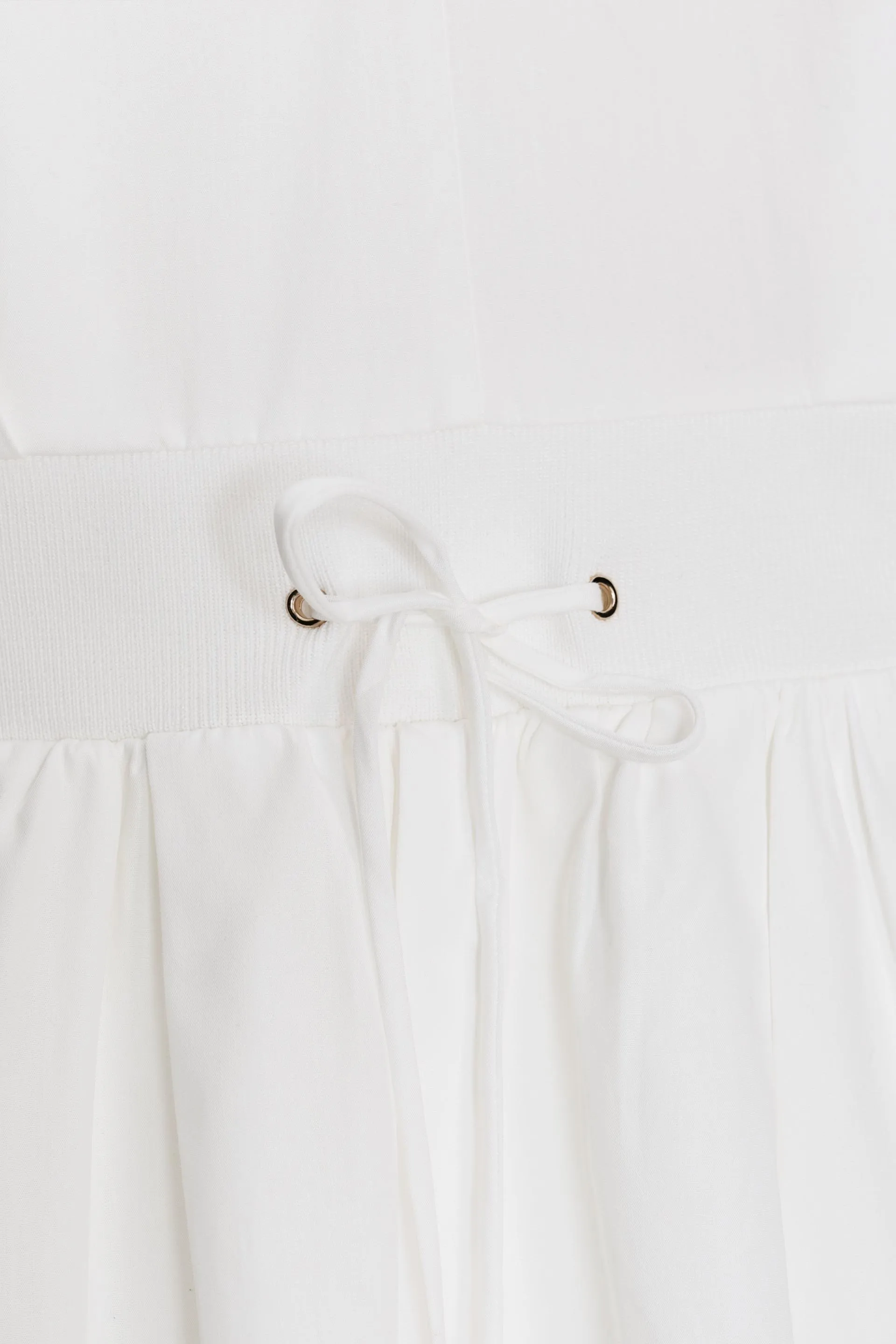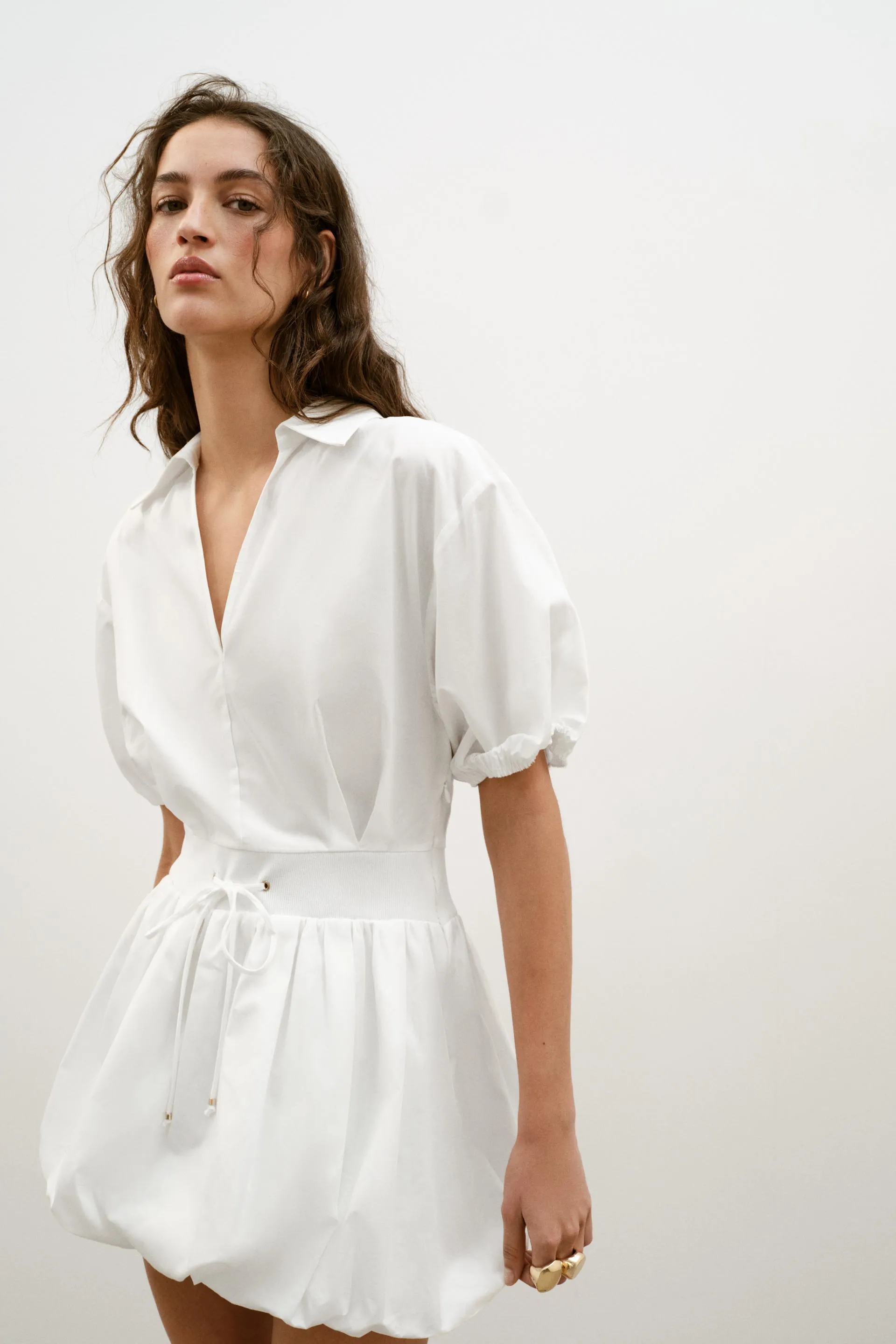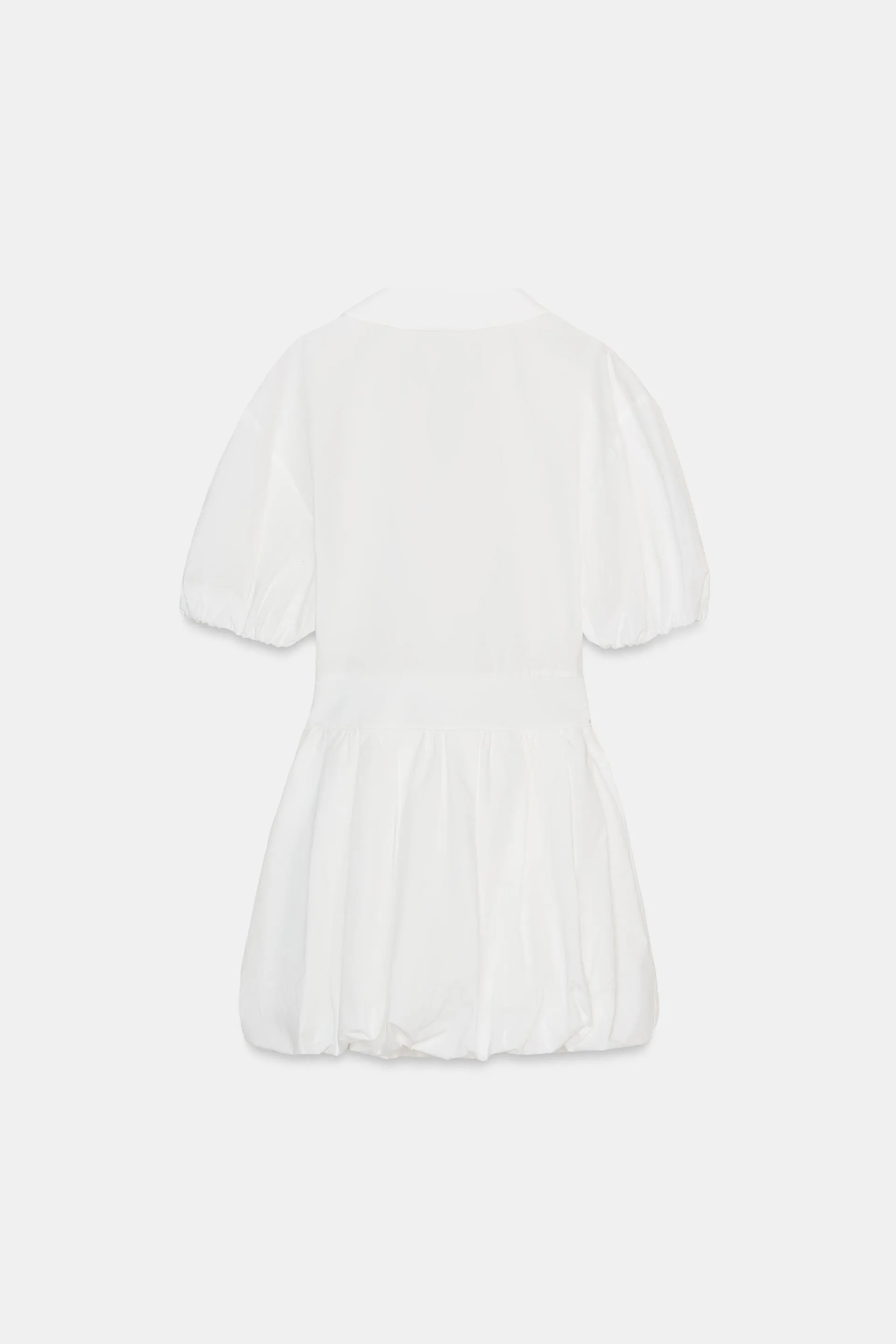 Poplin Mini Dress — лёгкое хлопковое мини-платье, которое выглядит так, будто вы только что вышли на солнечную улицу европейского города. Чистые линии, мягкий объём и идеально собранный силуэт создают баланс между повседневной лёгкостью и аккуратной женственностью.
