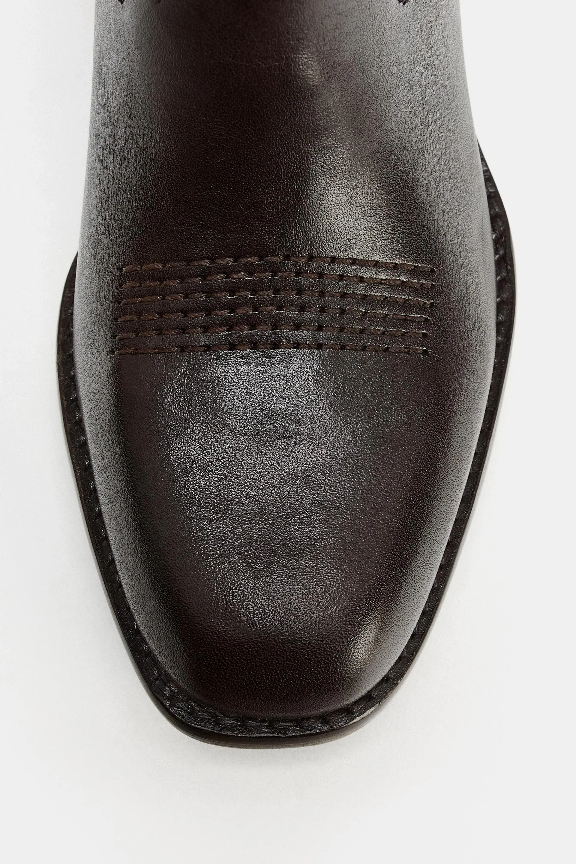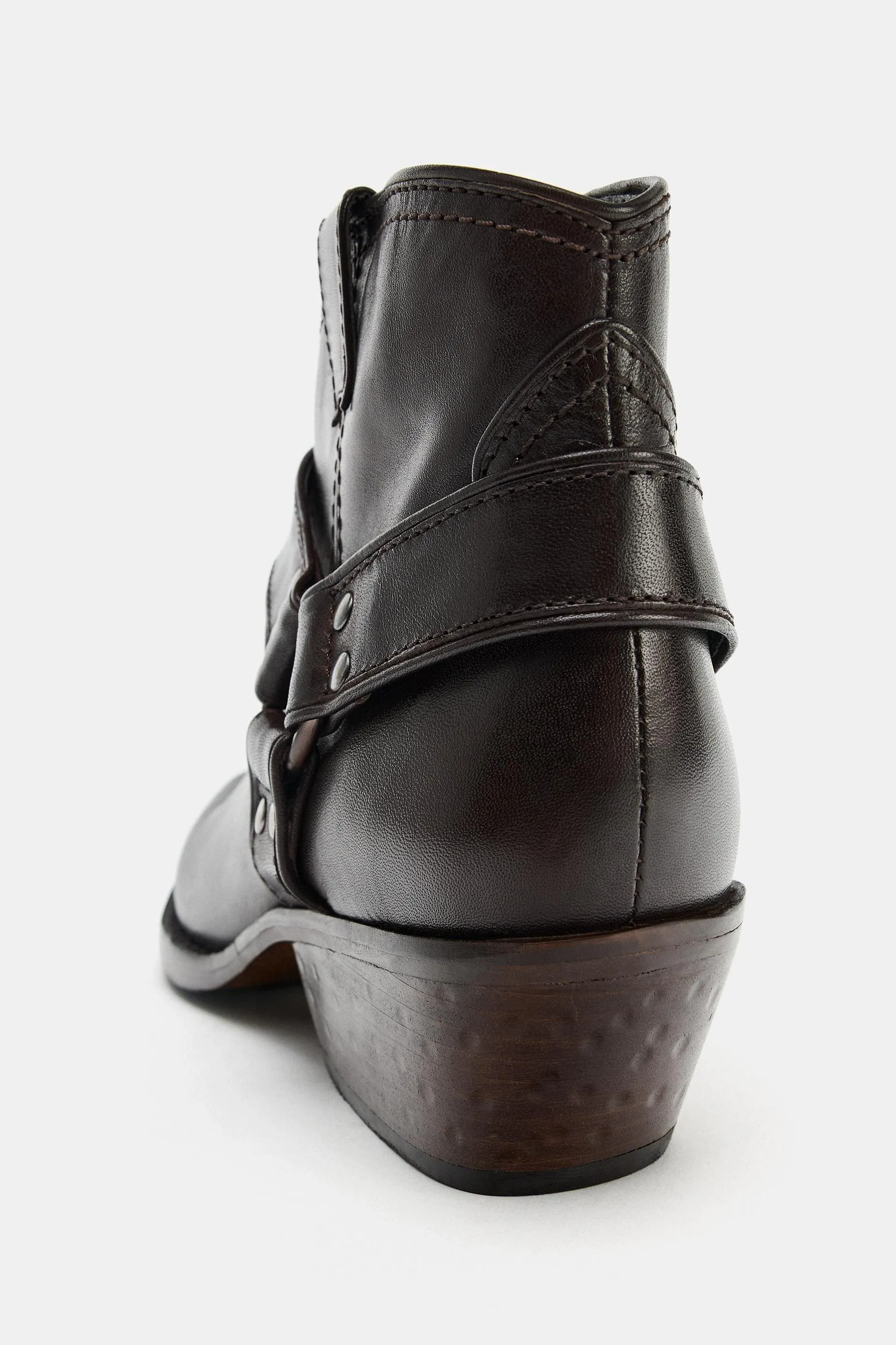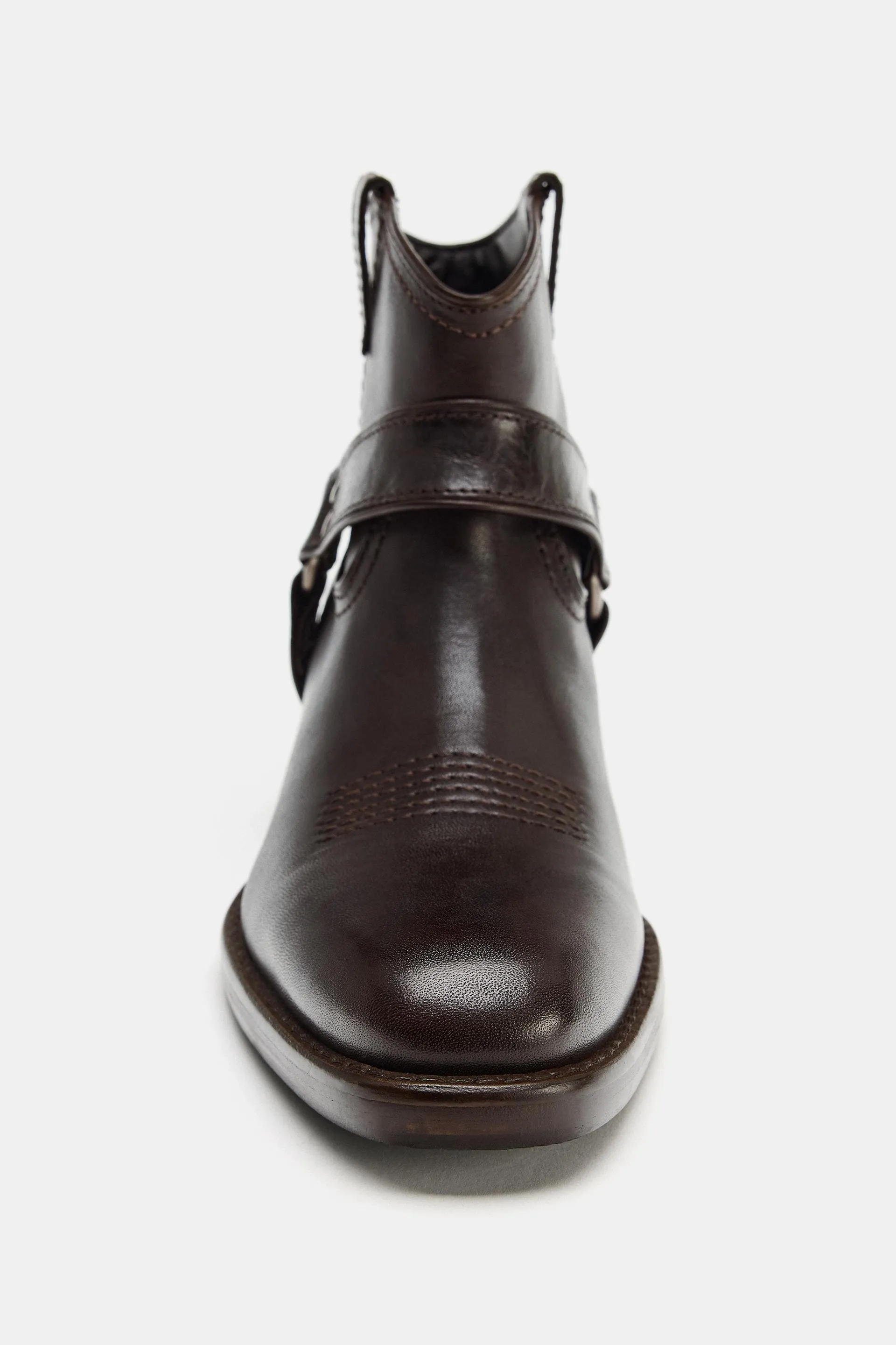 Leather Cowboy Ankle Boots with Rings — эффектные ботильоны в ковбойском стиле с металлическими деталями и акцентными кольцами. Модель сочетает характерный западный силуэт с современными элементами, создавая стильный и выразительный образ.