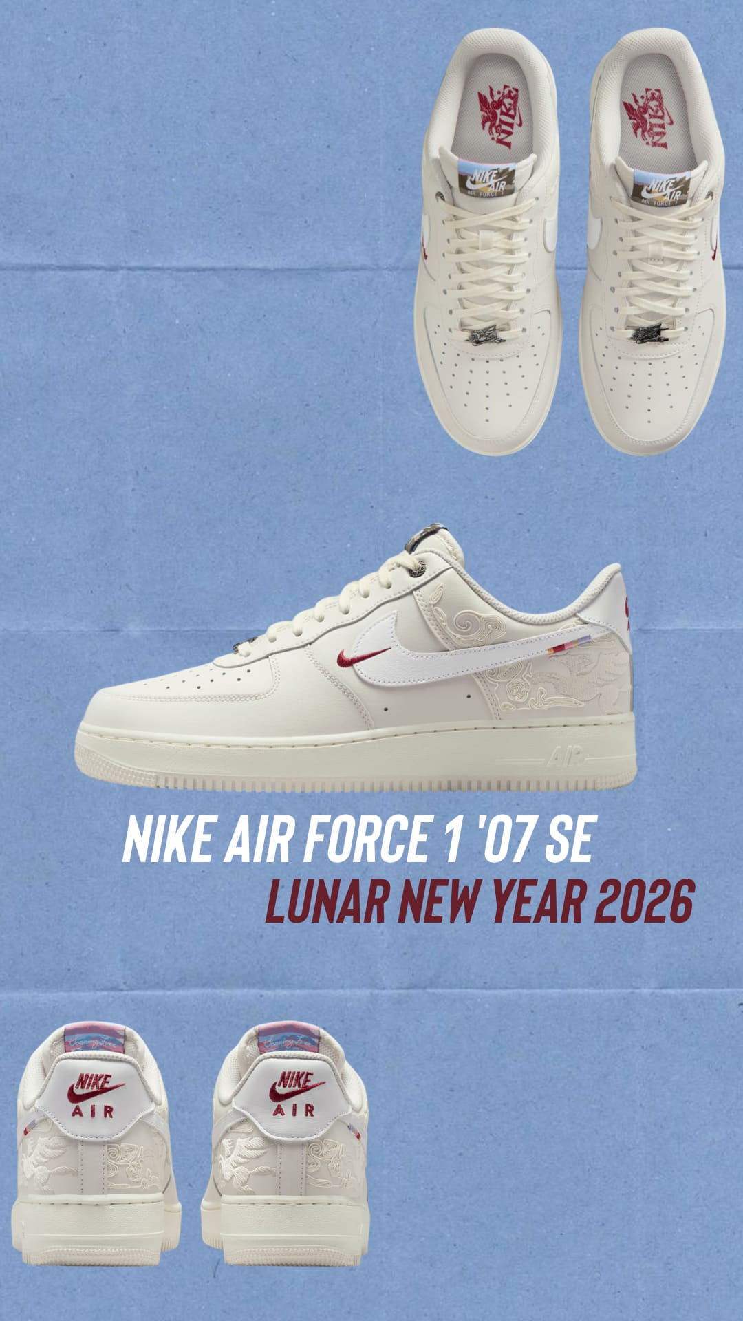 Главные отличия — праздничная цветовая палитра, тематические детали LNY, символика и премиальные материалы. Основной силуэт Air Force 1 ’07 остаётся неизменным.