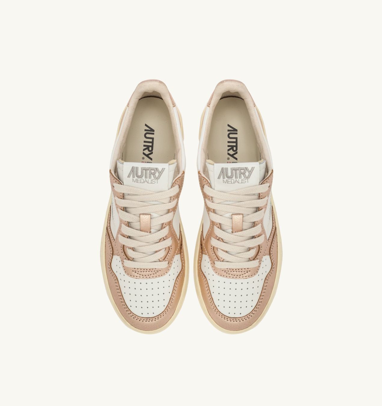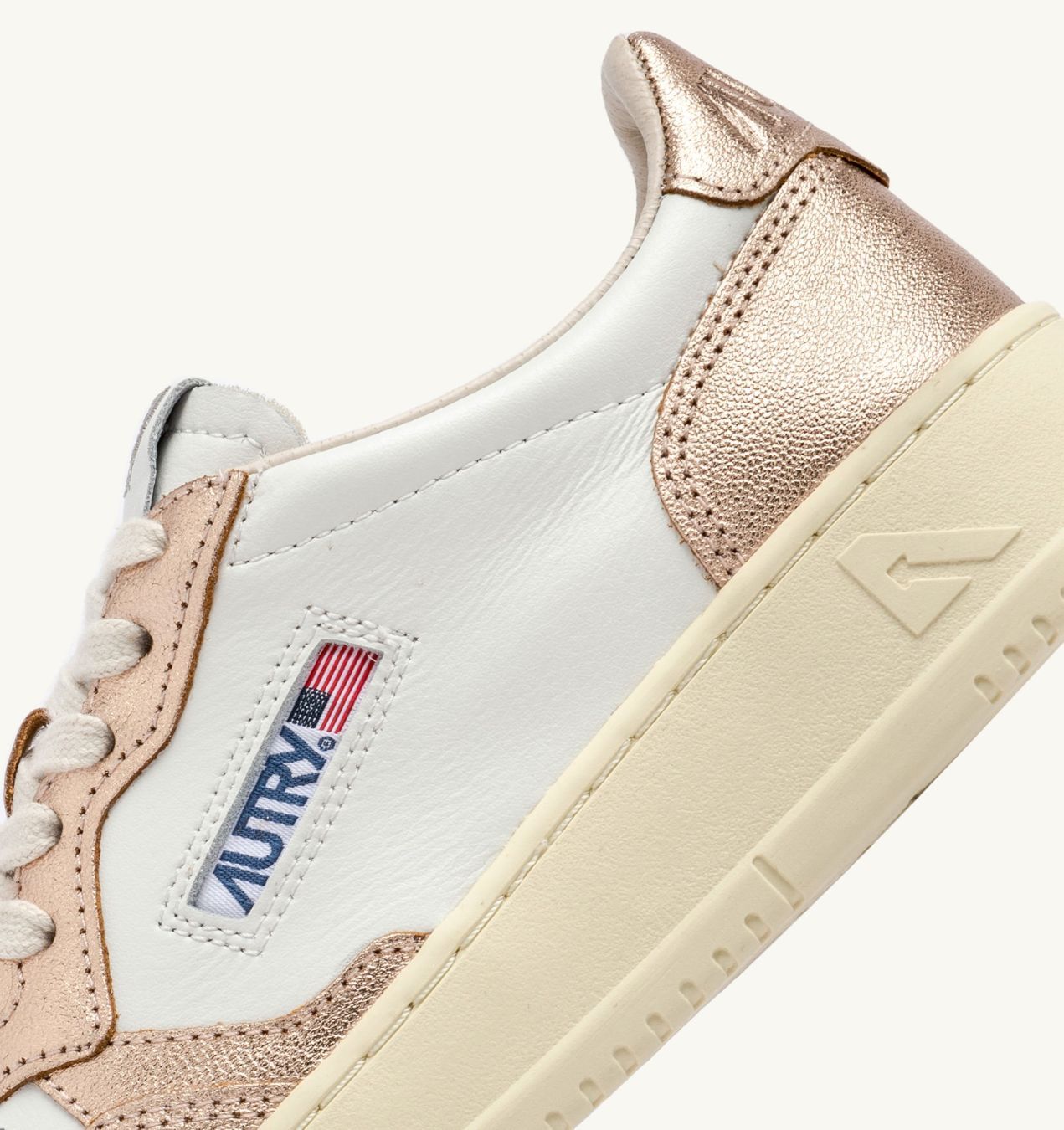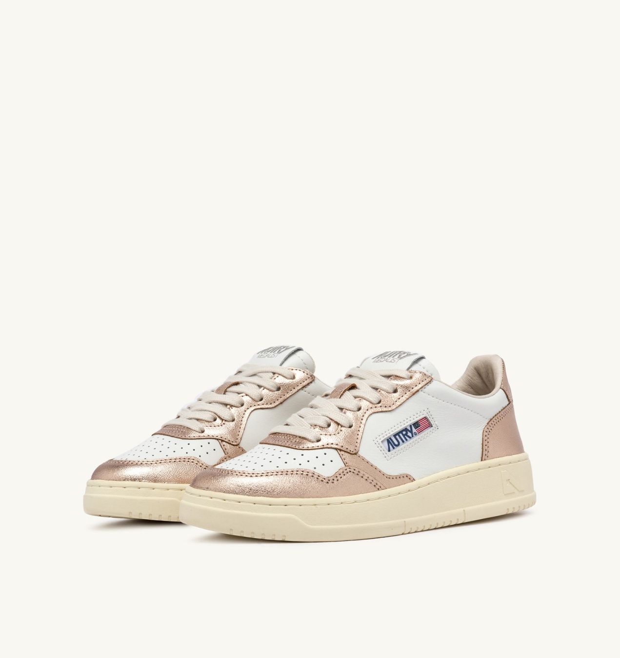 Женская модель сохраняет дух оригинального дизайна Autry, вдохновленного теннисными кроссовками 80-х годов, но обновляет пропорции и материалы для максимального комфорта и современного стиля. Полностью выполненные из кожи, кроссовки имеют смелый двухцветный дизайн в белом и платиновом цветах.