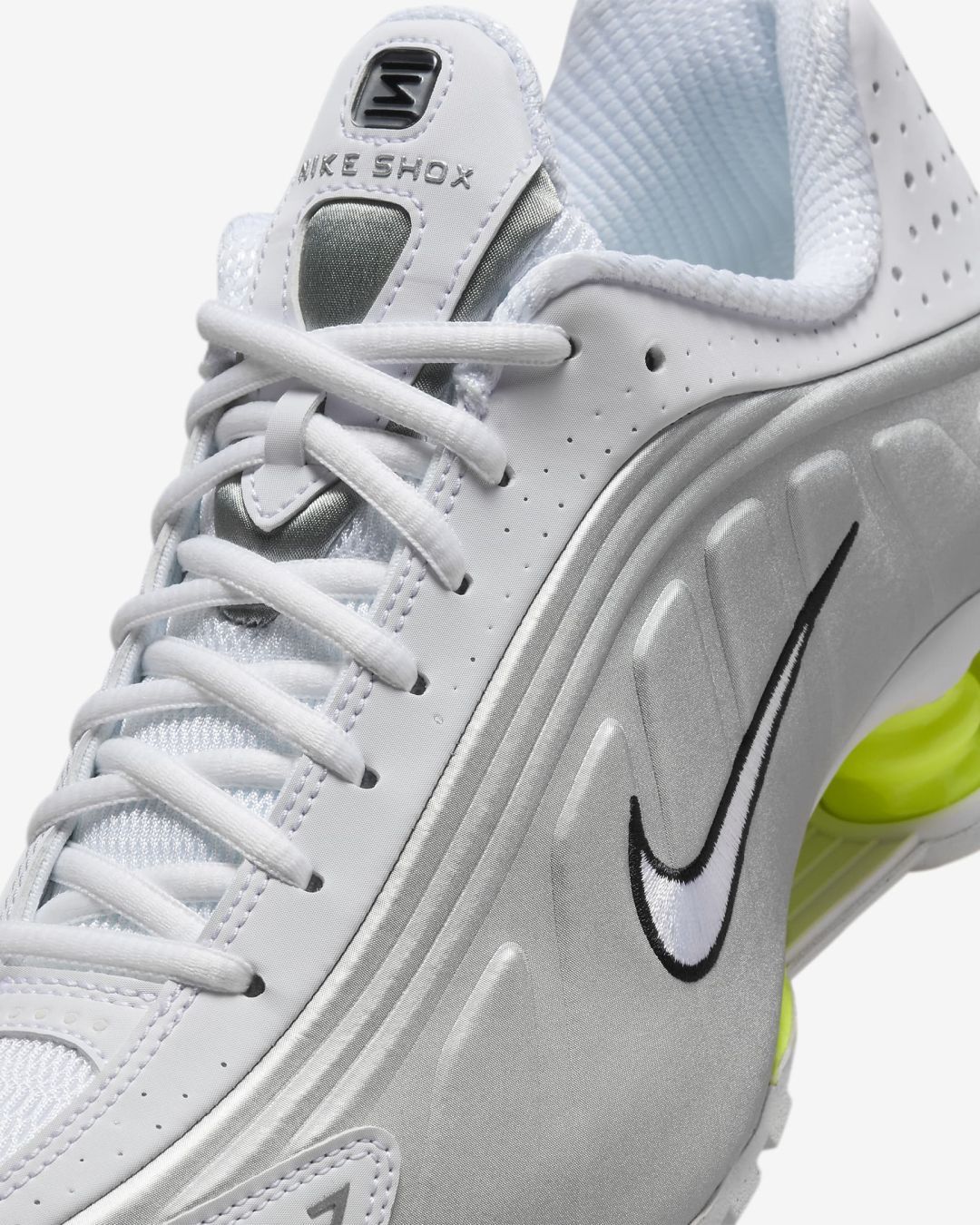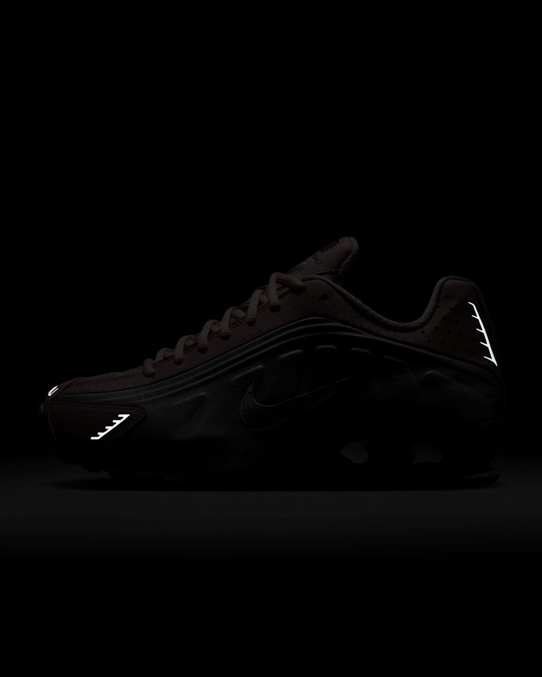 - Верх модели практически полностью повторяет дизайн оригинальных Nike Shox 2001 года.