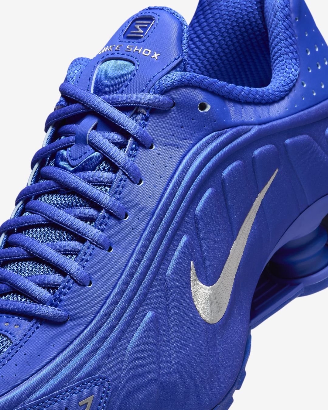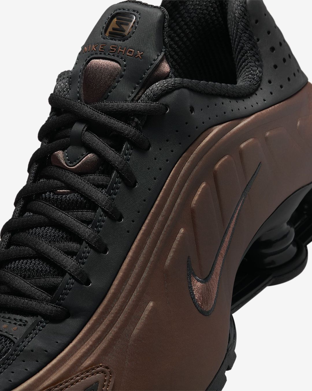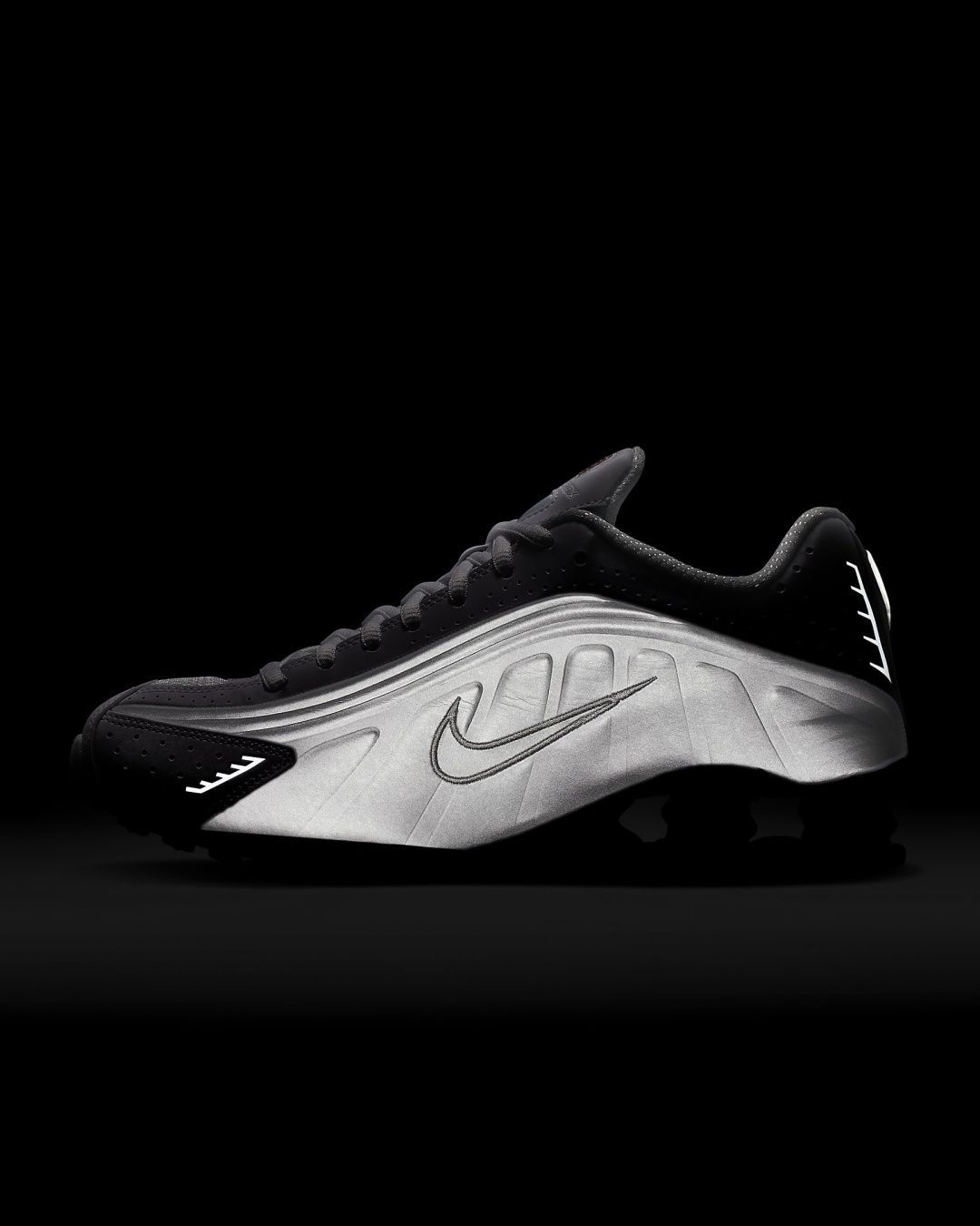 - Верх модели практически полностью повторяет дизайн оригинальных Nike Shox 2001 года.