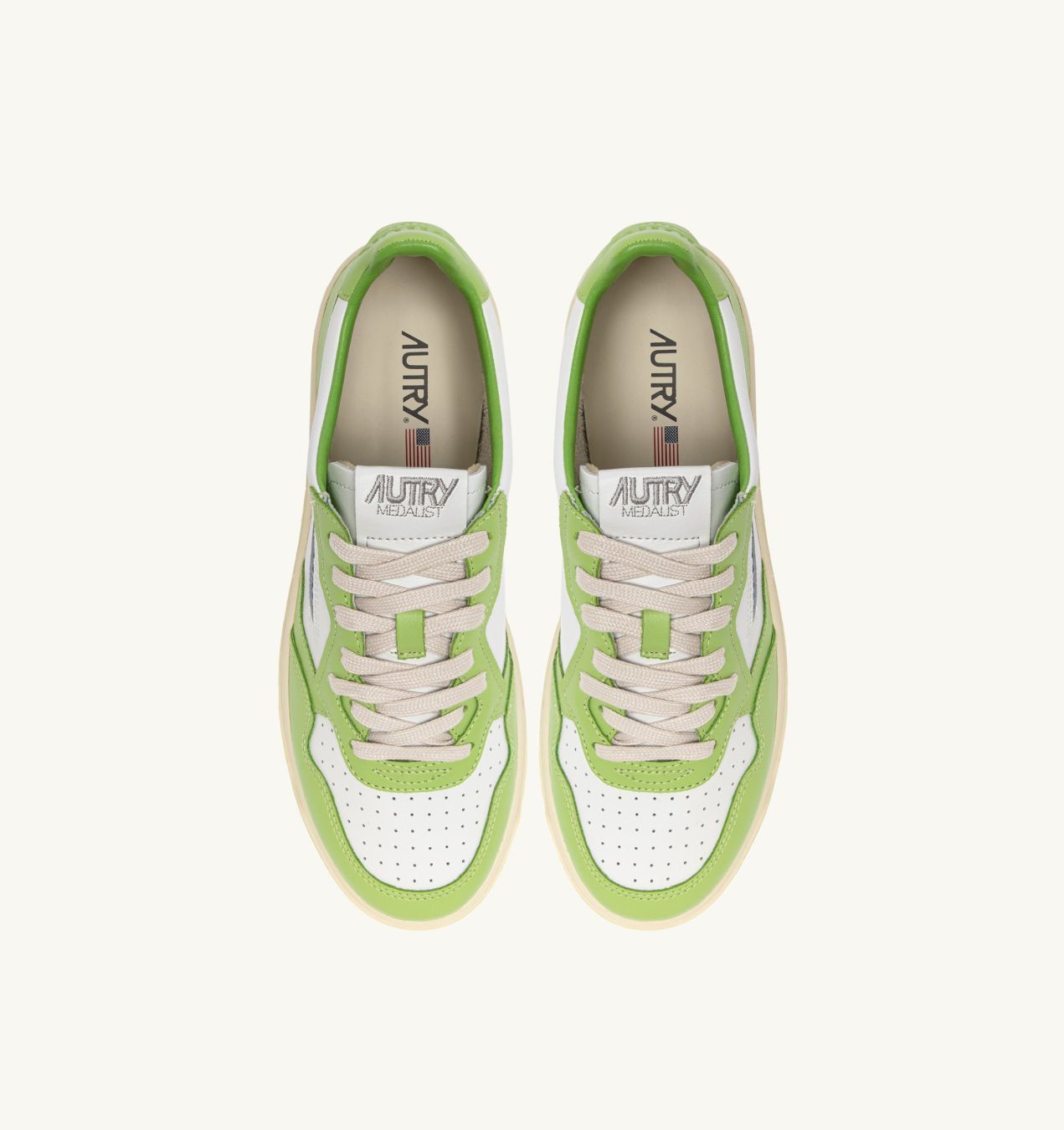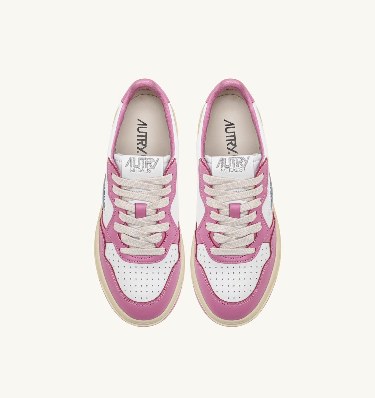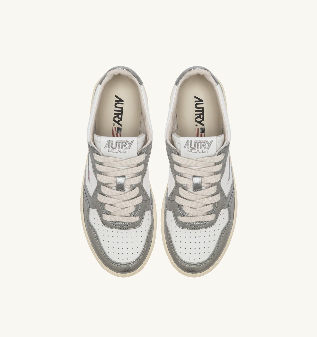 Женская модель сохраняет дух оригинального дизайна Autry, вдохновленного теннисными кроссовками 80-х годов, но обновляет пропорции и материалы для максимального комфорта и современного стиля. Полностью выполненные из кожи, кроссовки имеют смелый двухцветный дизайн в белом и платиновом цветах.
