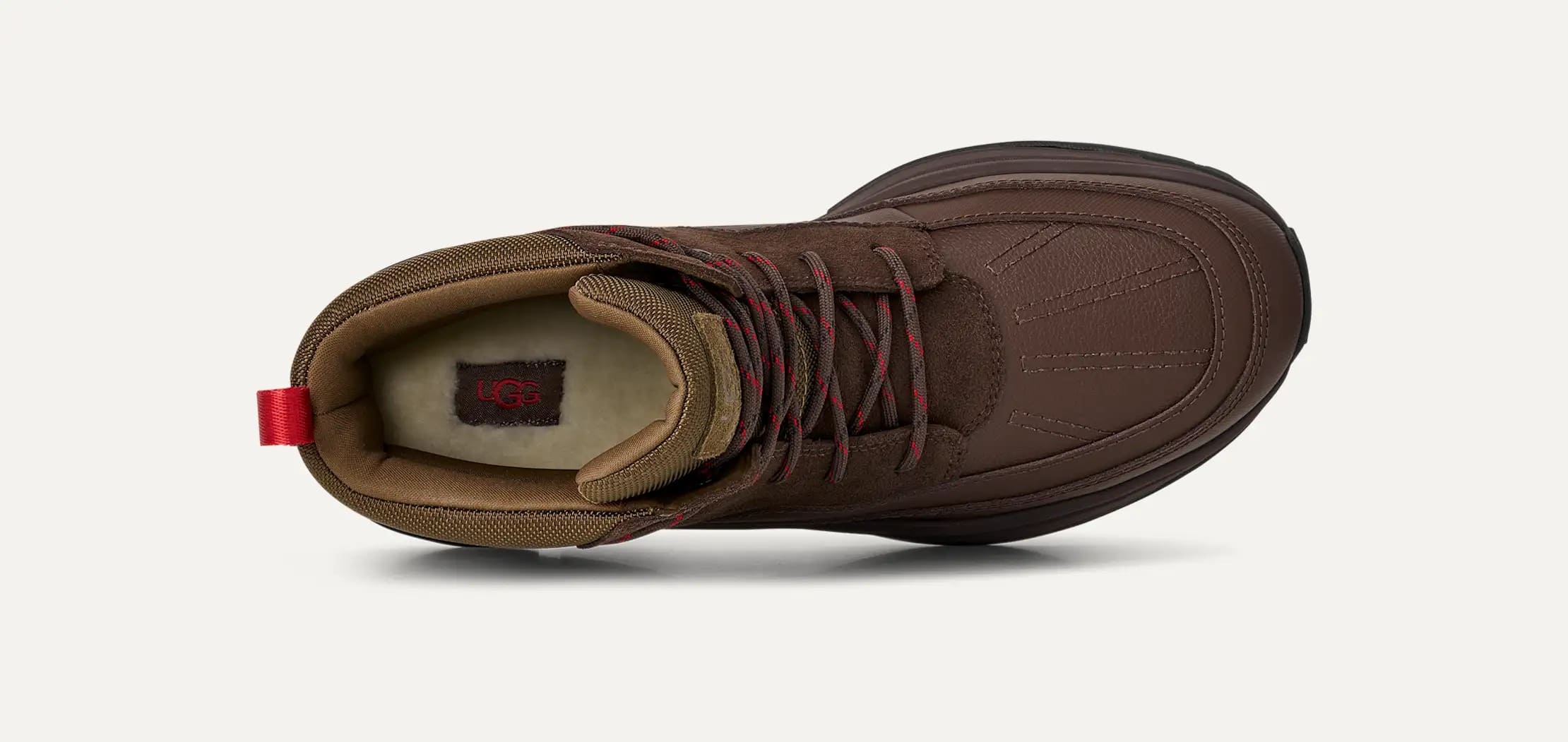 Ботинки выдерживают температуру до –20 °C и идеально подходят для повседневных прогулок, зимних поездок и холодных городских утр. Лаконичный дизайн, металлическая фурнитура и тиснёный логотип UGG® делают модель универсальной — её легко сочетать с джинсами, чиносами и пуховиком.