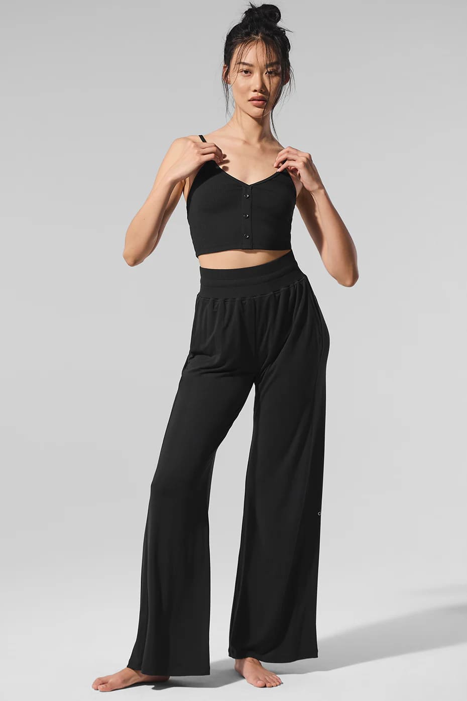 Лёгкие, струящиеся, почти невесомые — эти брюки от ALO YOGA созданы для тех, кто хочет чувствовать себя свободно и красиво даже дома. Полупрозрачная ткань мягко повторяет линии тела, не сковывая движений. Высокая посадка, клёш от бедра и тонкий силуэт — всё работает на ваш комфорт и стиль.