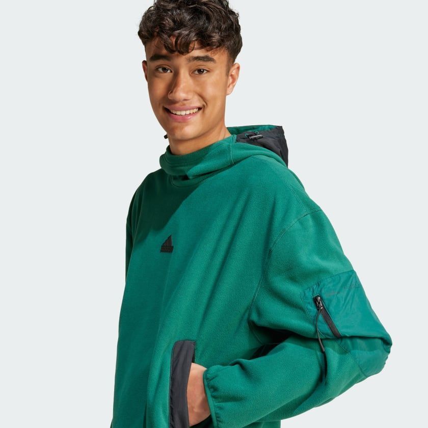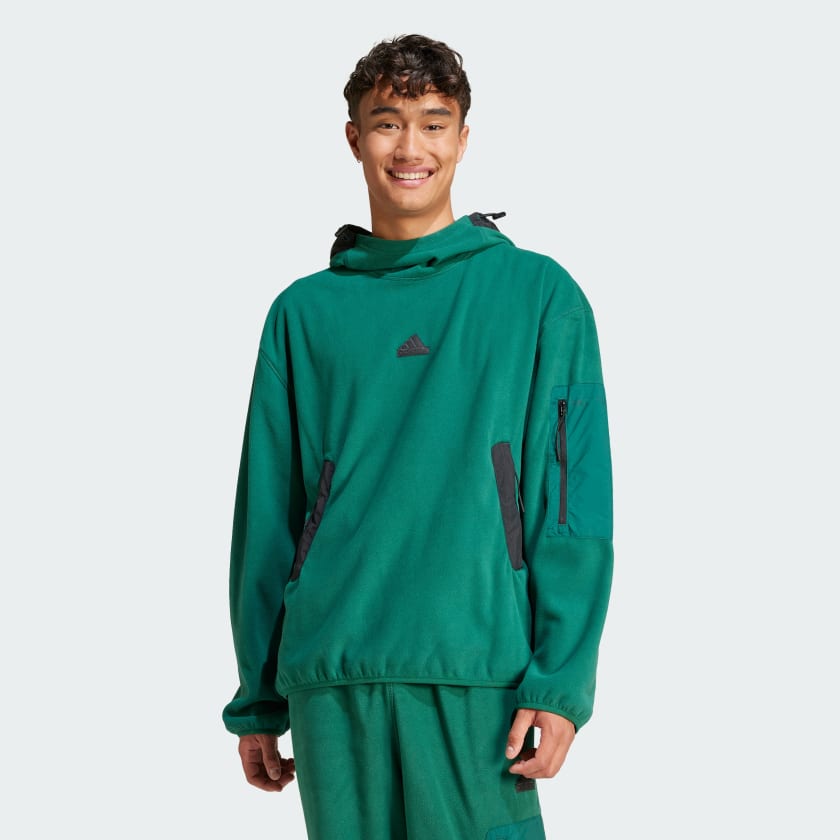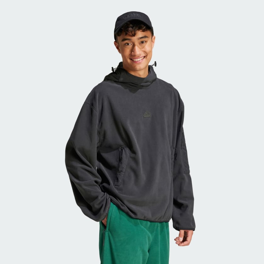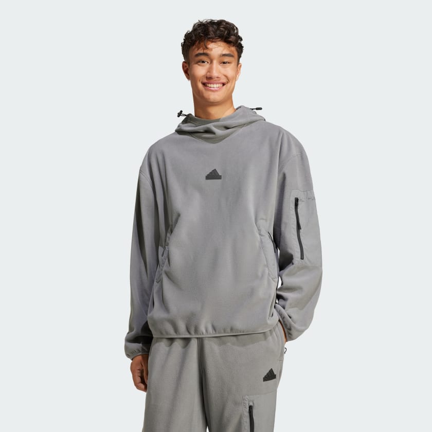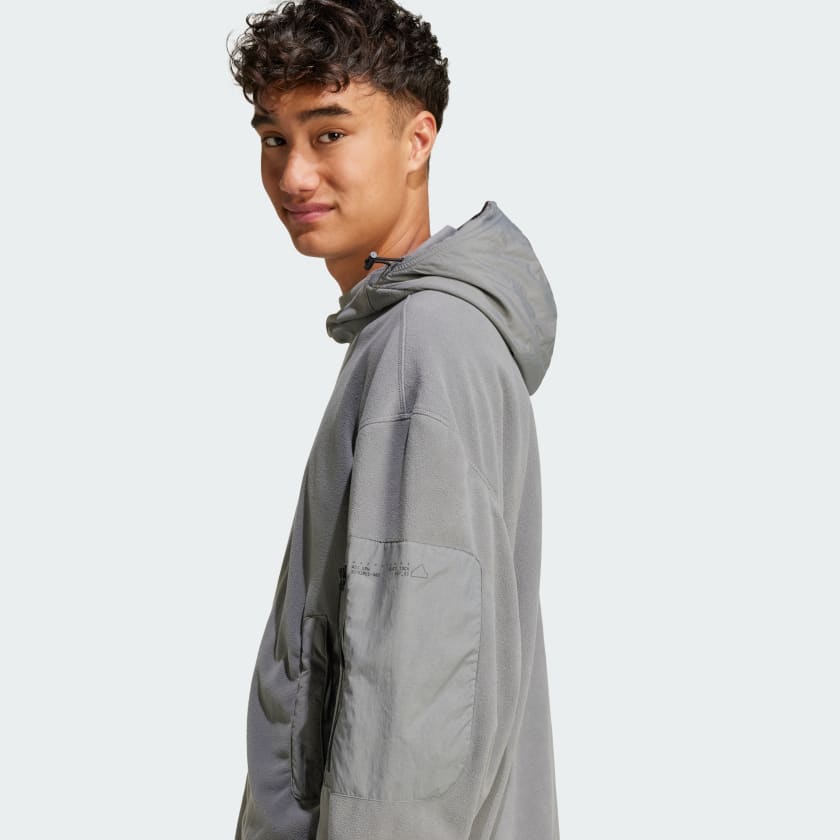 Погрузитесь в комфорт с этой уютной худи от adidas. Идеально подходит для прогулок на природе или повседневных дел в городе — мягкий флисовый материал и свободный крой обеспечат удобство в движении. Застежки-молнии на карманах надежно сохранят ваши вещи, оставив руки свободными во время приключений, как близких, так и дальних.