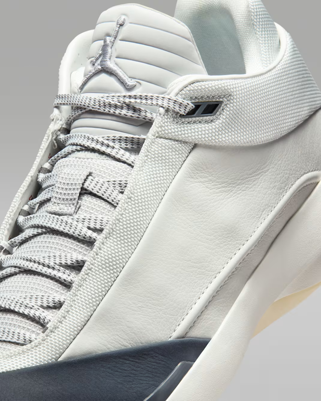 Верх модели сочетает прочный канвас, кожаный мыс и gum rubber подошву, создавая выразительный внешний вид с отсылкой к наследию Jordan и современному court-ready дизайну.