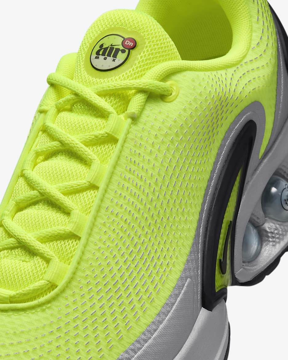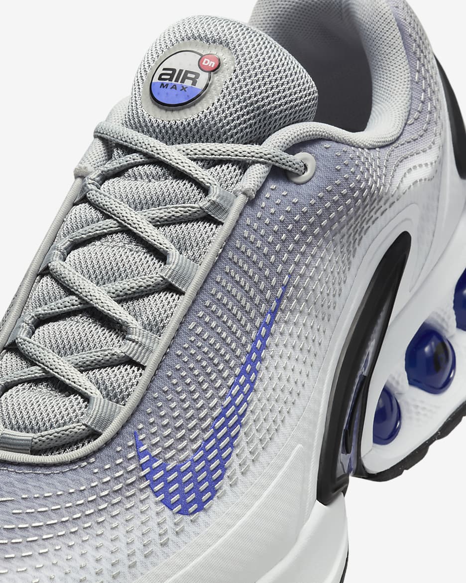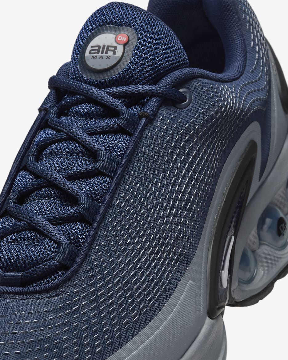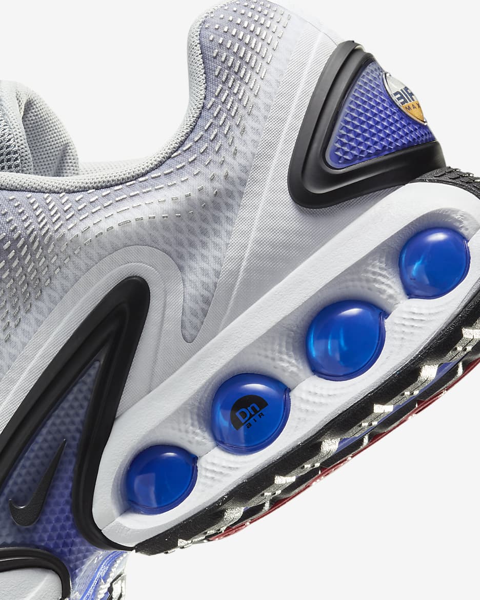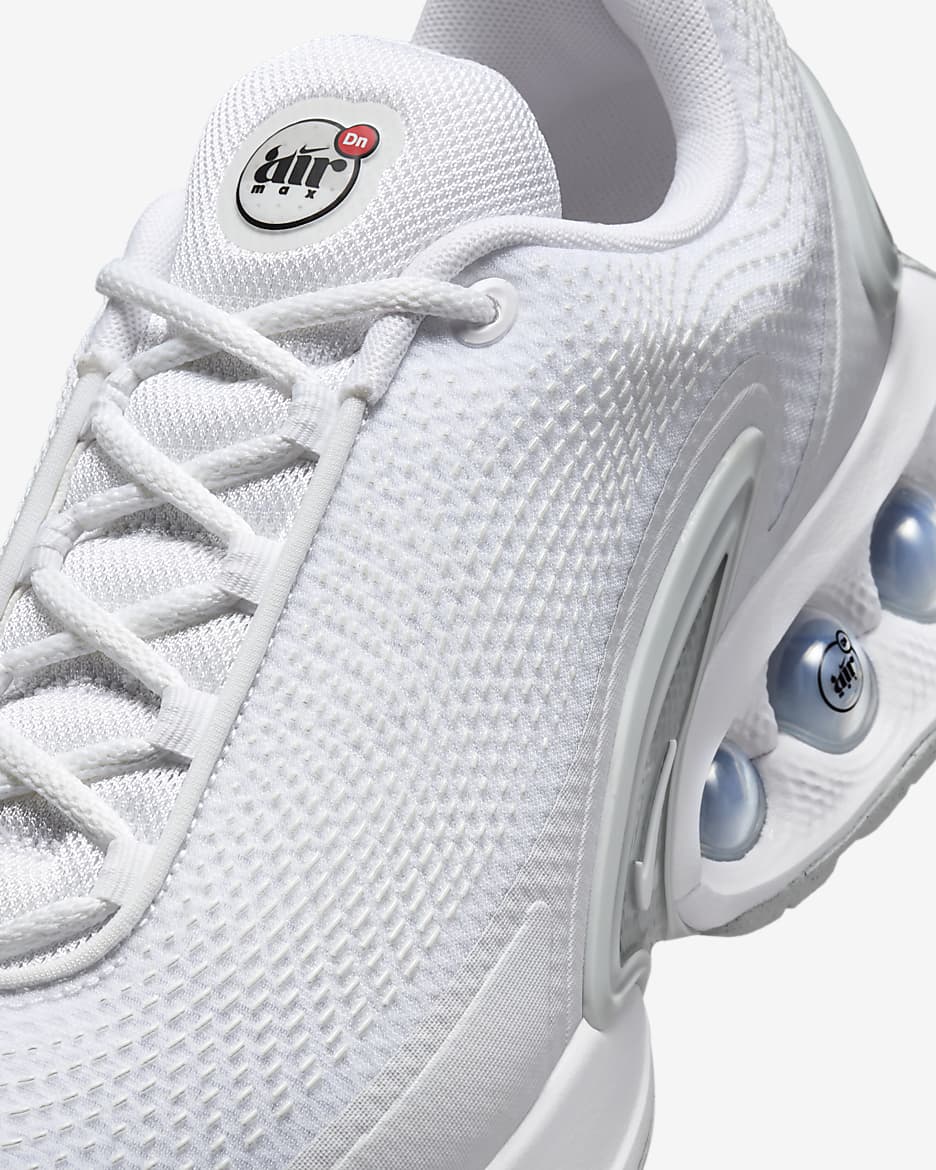 Встречайте новое поколение технологий Air. Модель Air Max Dn оснащена нашей системой Dynamic Air, состоящей из двухтрубных модулей с двойным давлением, которые создают реактивное ощущение при каждом шаге. Это придает футуристический дизайн, который достаточно удобен для носки в течение всего дня. Попробуйте — почувствуйте нереальное.