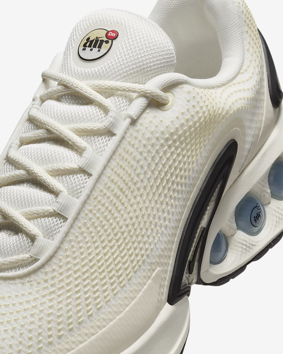 Встречайте новое поколение технологий Air. Модель Air Max Dn оснащена нашей системой Dynamic Air, состоящей из двухтрубных модулей с двойным давлением, которые создают реактивное ощущение при каждом шаге. Это придает футуристический дизайн, который достаточно удобен для носки в течение всего дня. Попробуйте — почувствуйте нереальное.
