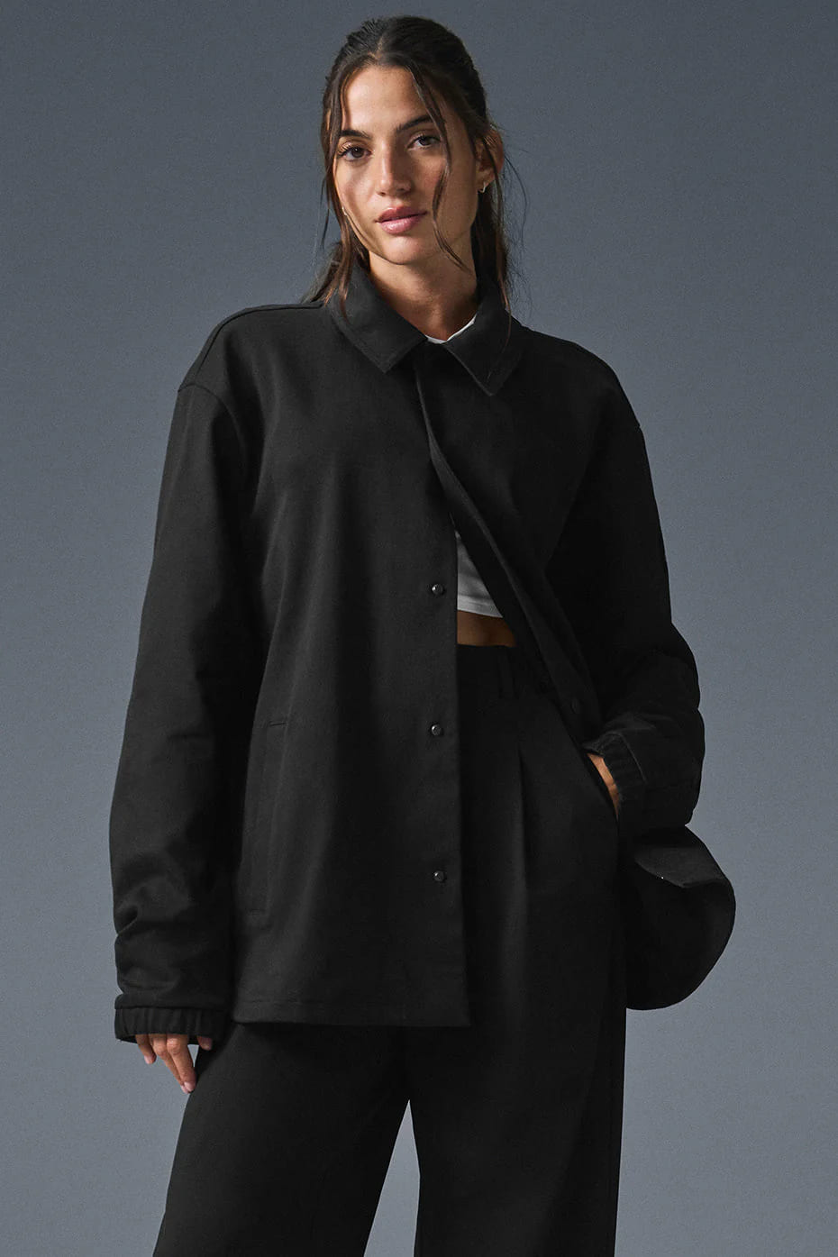 Продуманная до мелочей, эта куртка от Alo Yoga сразу задаёт нужный тон образу. Лёгкая структура, чёткая посадка, кнопки и эластичные манжеты делают её идеальной для многослойных городских образов. Контурные швы на рукавах придают динамику, а слегка тянущийся материал — комфорт в движении.