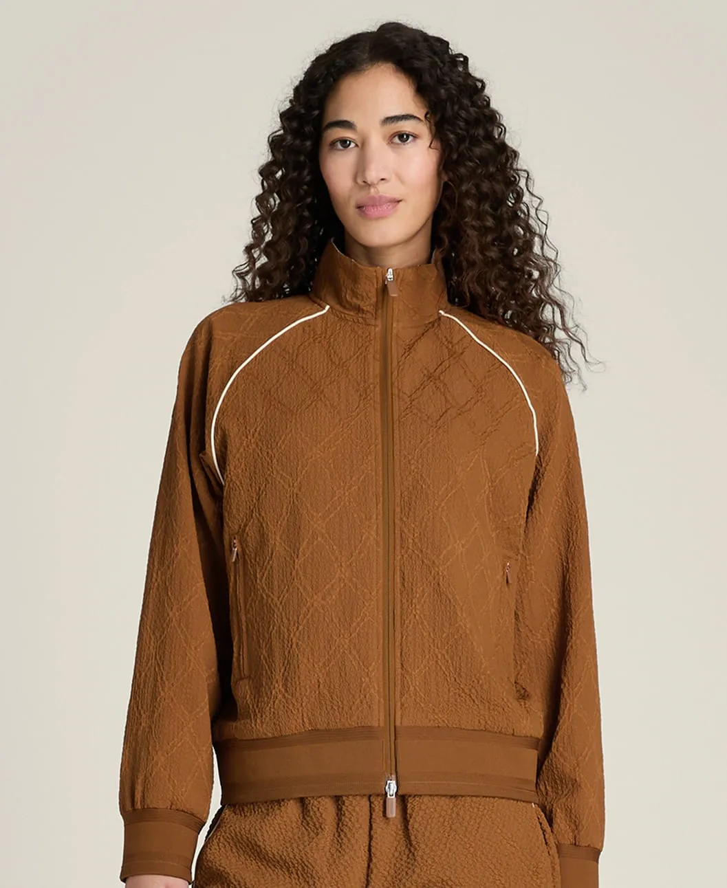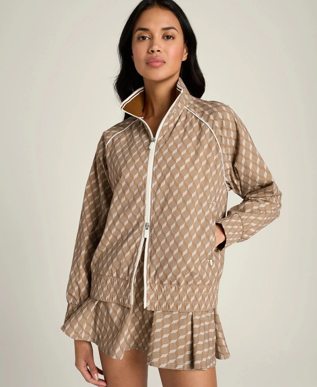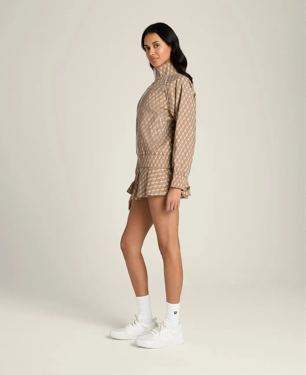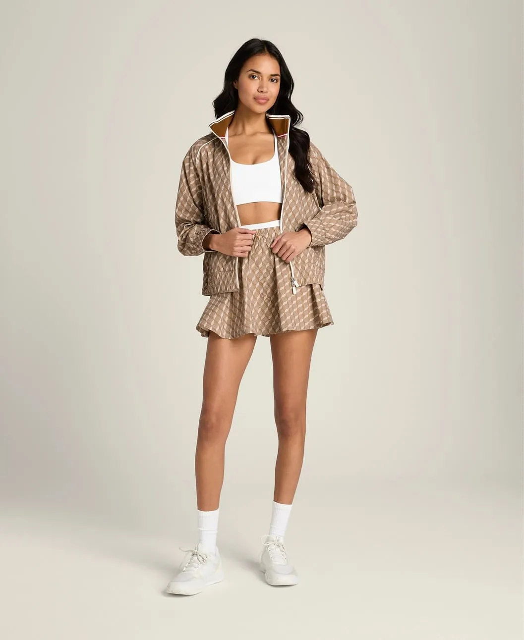 Дизайн куртки вдохновлён классической эстетикой тенниса. Минималистичный силуэт, аккуратные детали и лёгкая драпировка ткани создают современный образ с элементами ретро-стиля.