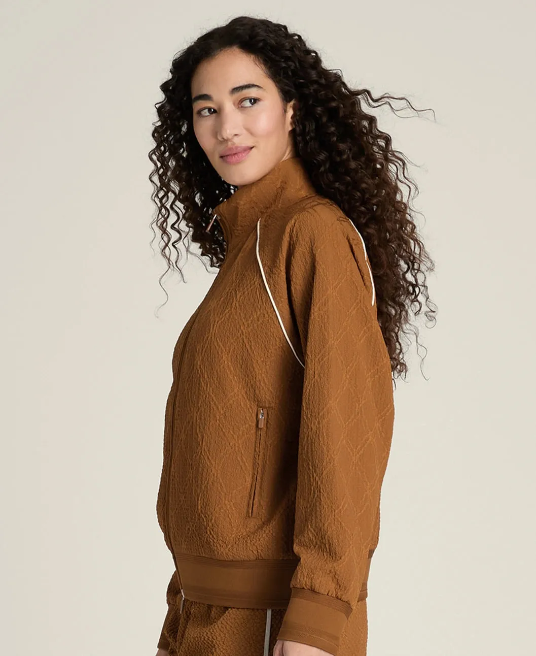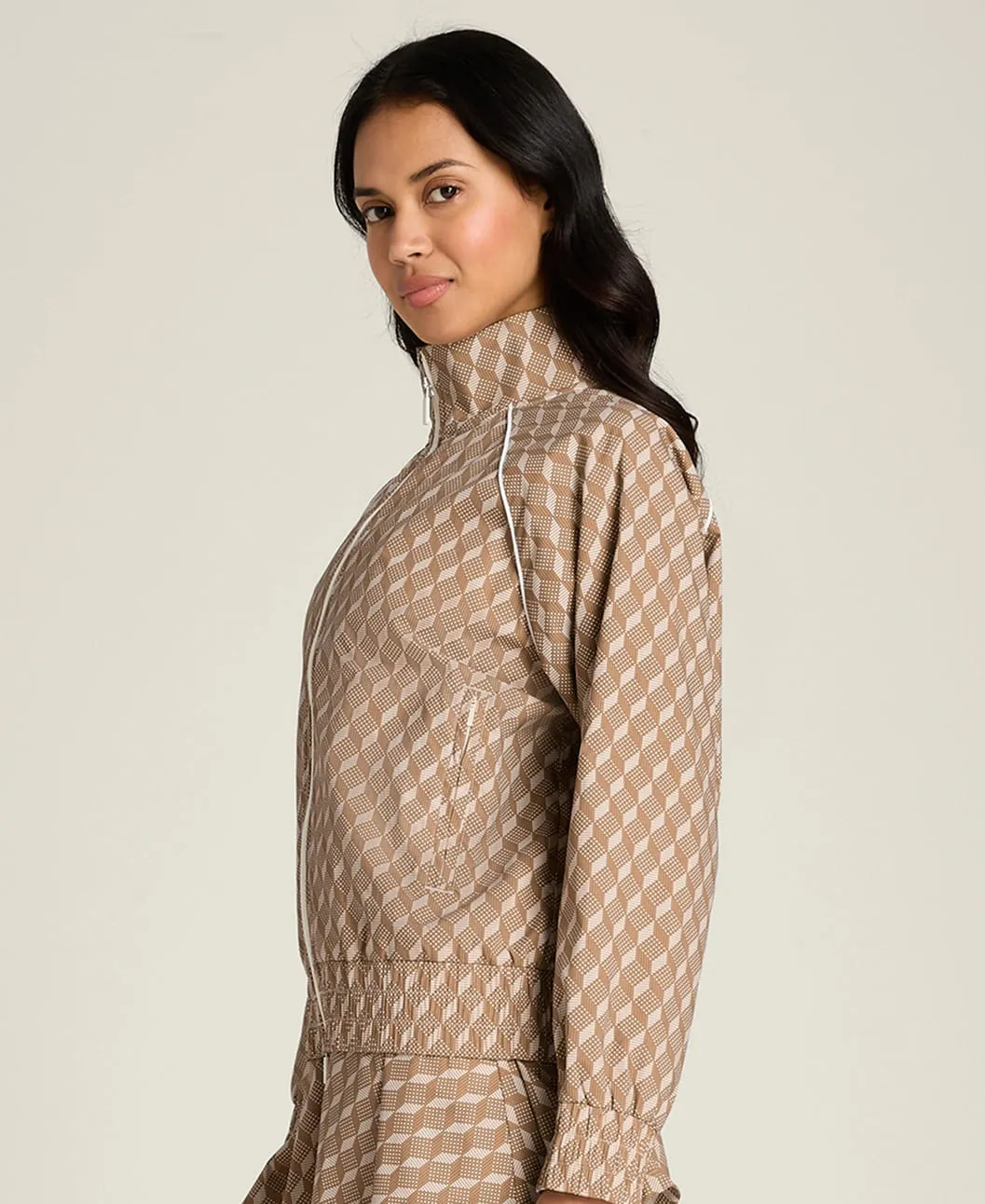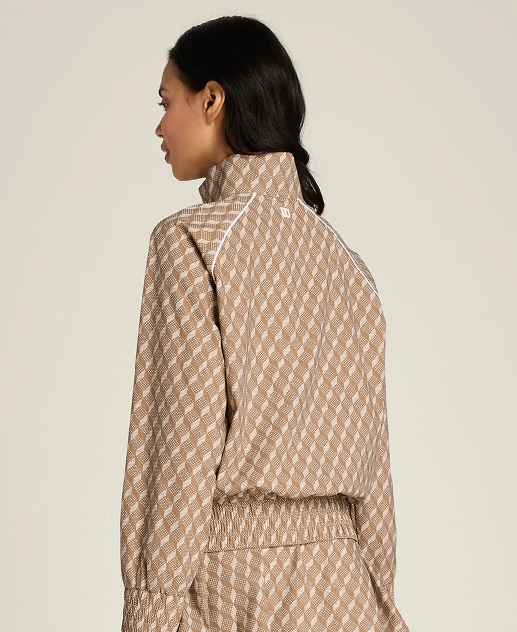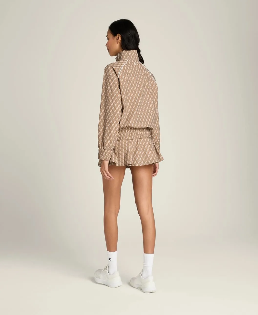 Дизайн куртки вдохновлён классической эстетикой тенниса. Минималистичный силуэт, аккуратные детали и лёгкая драпировка ткани создают современный образ с элементами ретро-стиля.