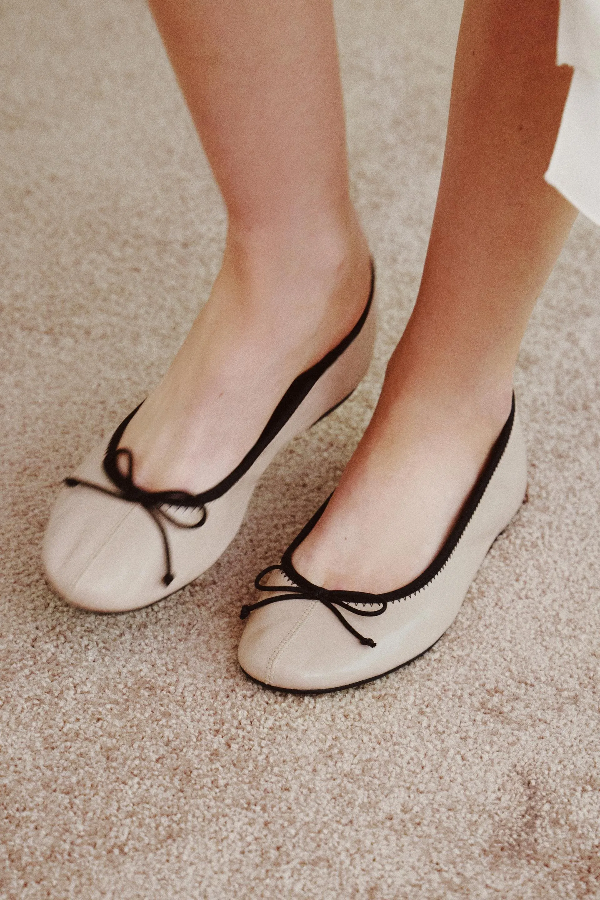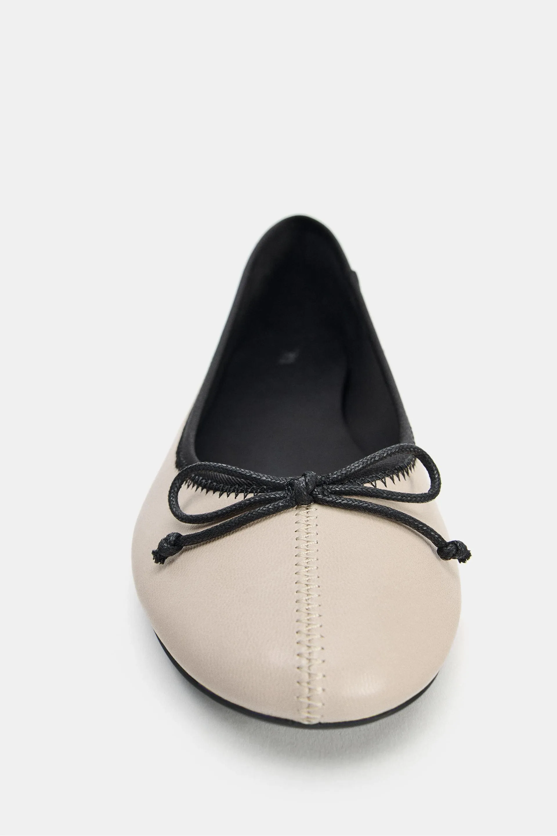 Классические кожаные балетки — универсальная модель для женственных и повседневных образов. Контрастная отделка и декоративный бантик добавляют утончённости, а мягкая форма обеспечивает комфорт на весь день.