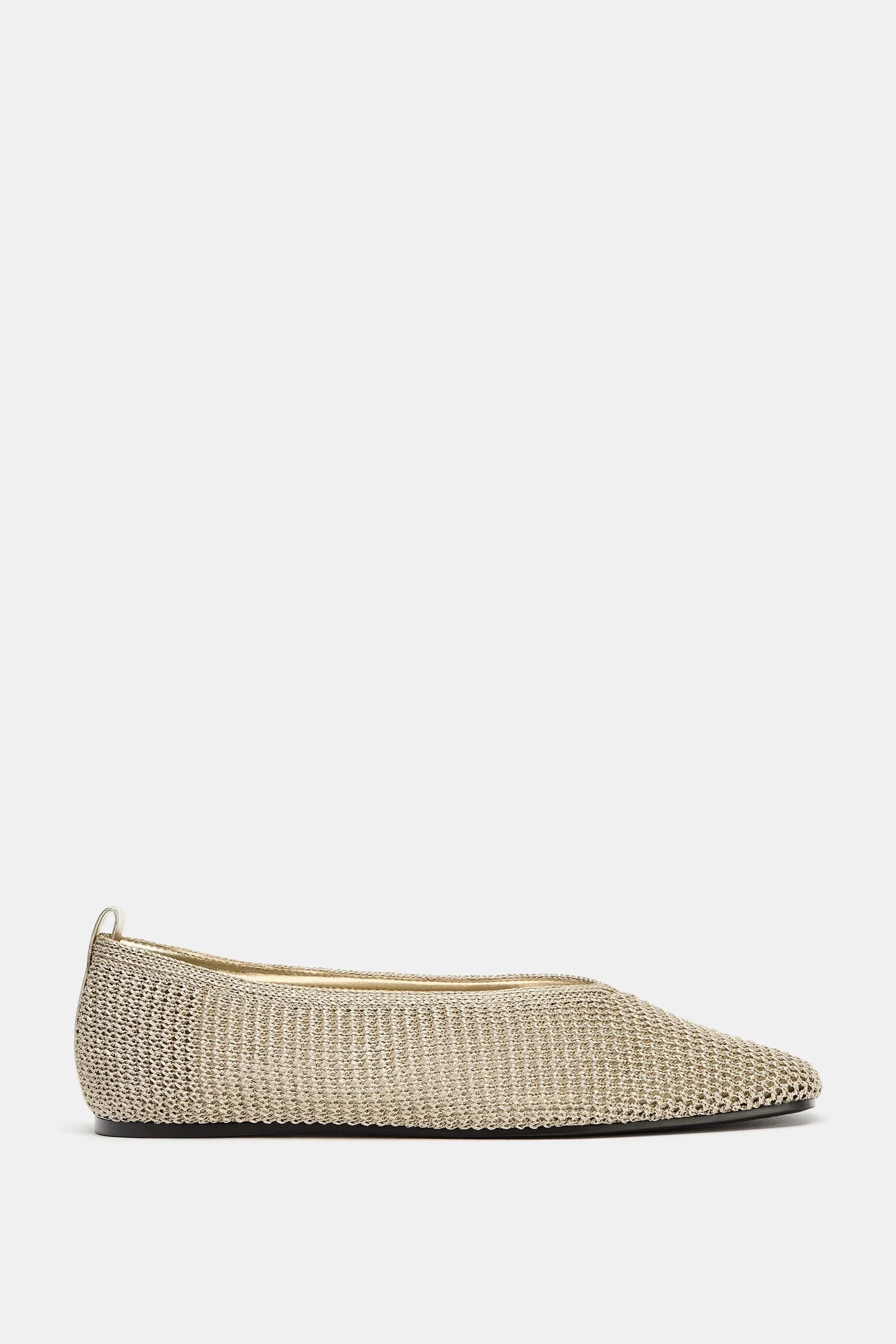 Metallic Woven Ballet Flats — сияющие балетки с плетёной фактурой, которые добавляют образу лёгкий глам и летнее настроение. Идеальная пара для тех, кто любит комфорт, но не готов отказываться от блеска.