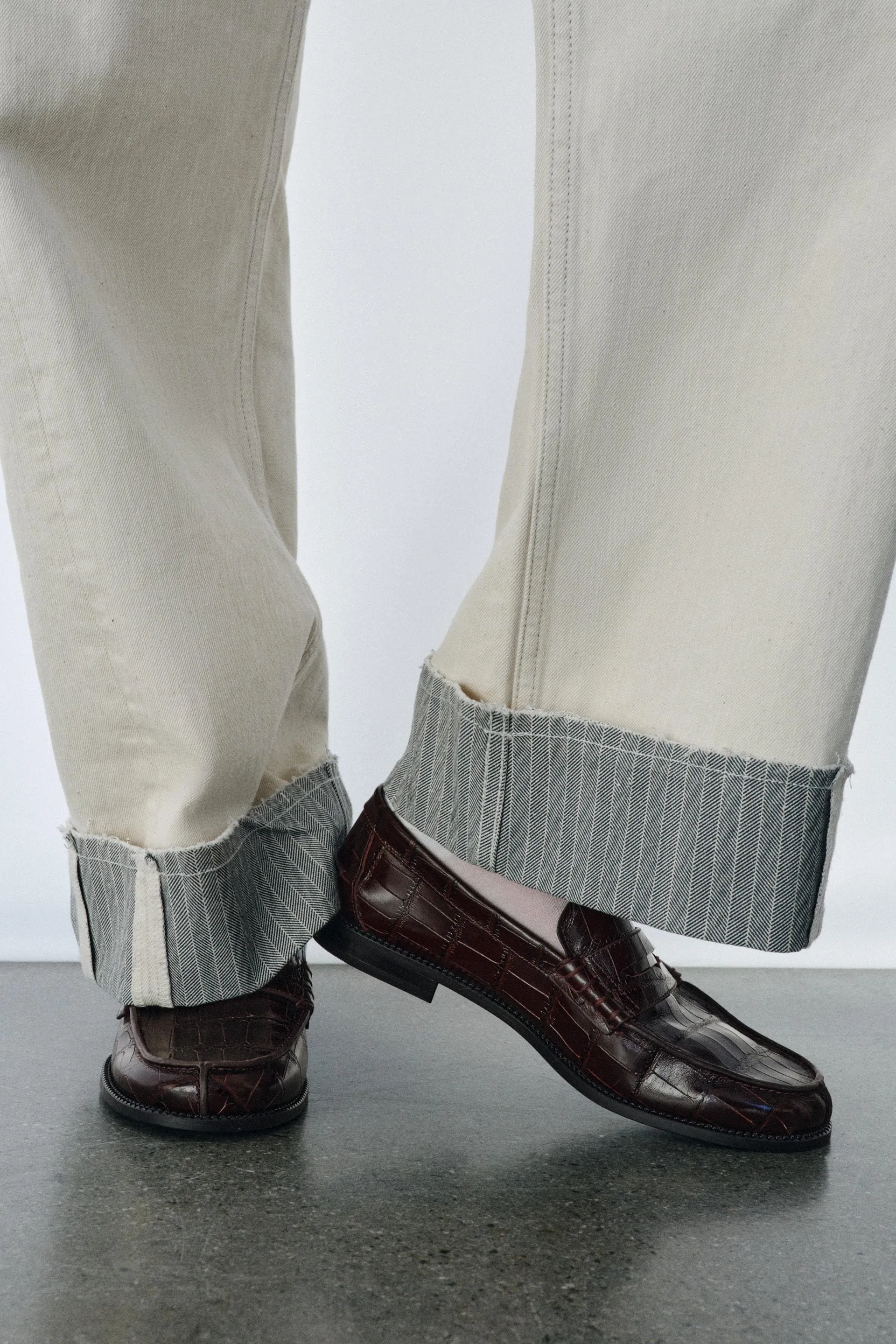 Embossed Leather Loafers — элегантная классика с фактурным характером. Натуральная кожа с тиснением, высокая союзка и фирменная перемычка создают утончённый силуэт, который делает любой образ дороже и собраннее.