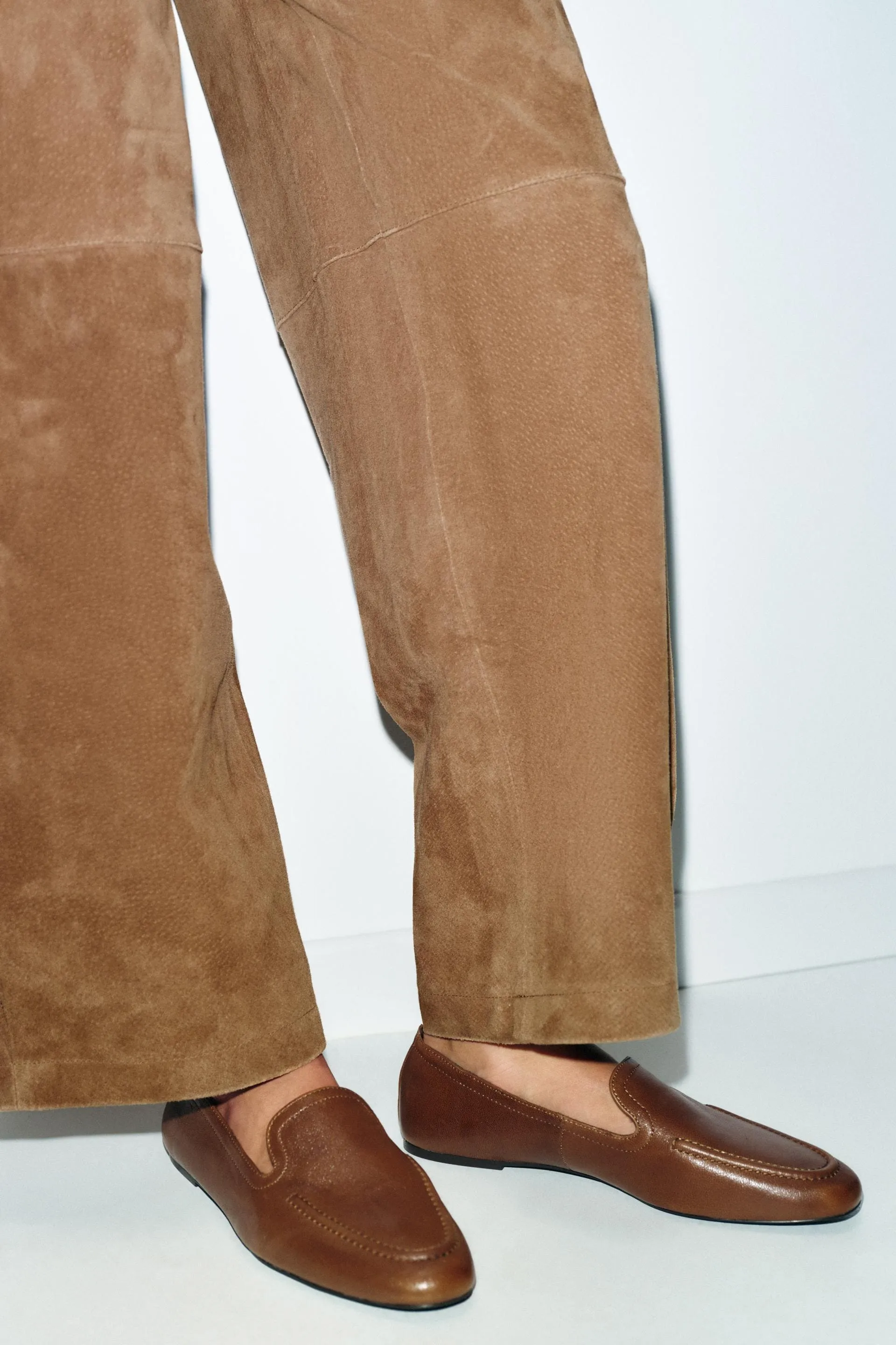 Leather Loafers with High Vamp — минималистичная классика с акцентом на форму. Высокая союзка и аккуратная строчка создают чистый, собранный силуэт, который выглядит дорого и актуально в любом гардеробе.