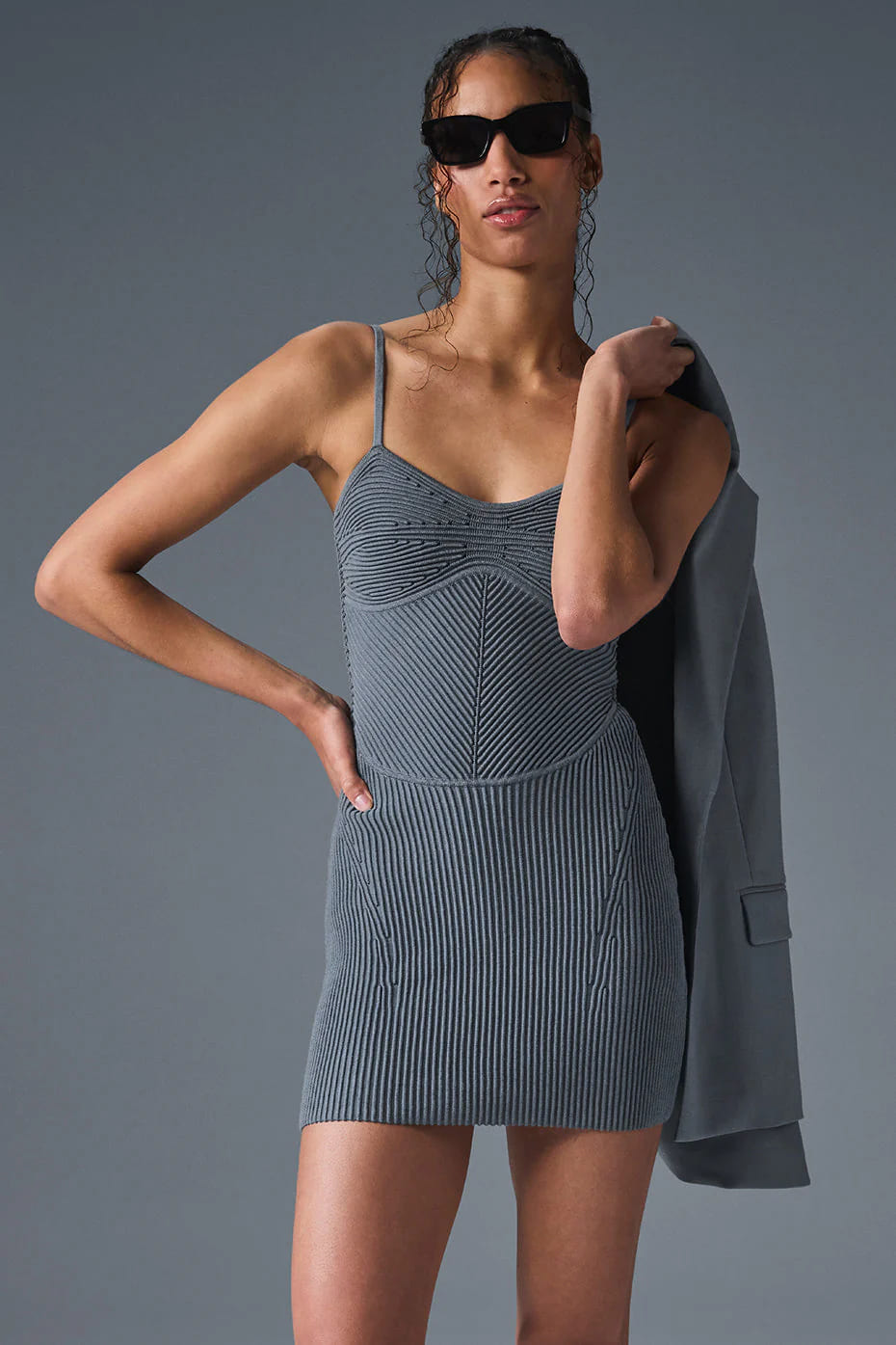 Это мини-платье создано для тех, кто любит силуэт «в обтяжку», фактурные ткани и уверенность в каждом движении. Мягкий, но структурированный трикотаж с рельефом под деним подчёркивает фигуру, а швы-выточки визуально скульптурируют тело. Регулируемые лямки обеспечивают комфортную посадку. Идеально для «девчачьих выходов» и спонтанных ночей в городе.