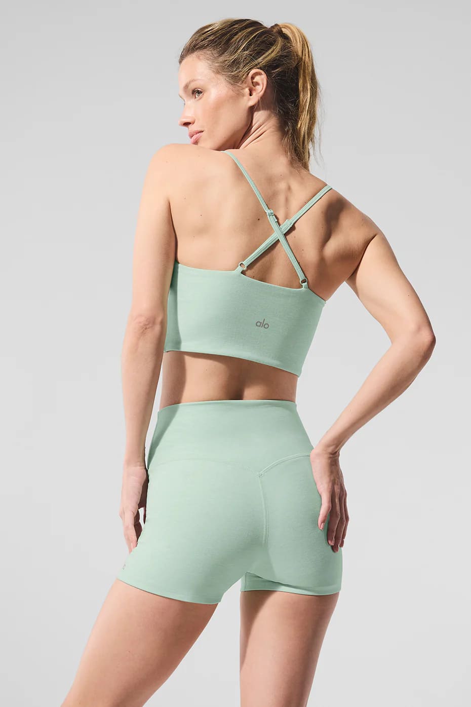 Модель выполнена из ультрамягкой и дышащей ткани Alosoft, которая ощущается как вторая кожа. Небольшой V-образный вырез и аккуратный cutout под грудью визуально подчёркивают силуэт, а регулируемые перекрещивающиеся бретели позволяют адаптировать посадку под себя.