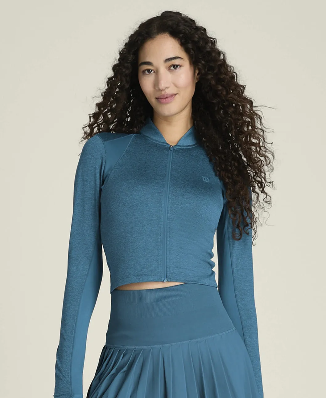Топ с длинными рукавами и полной молнией обеспечивает дополнительное покрытие во время игры на открытом корте, а технологичная ткань помогает сохранять ощущение сухости и комфорта на протяжении всей тренировки.