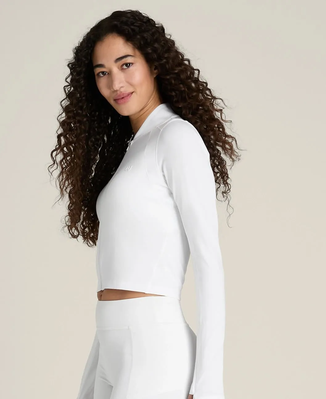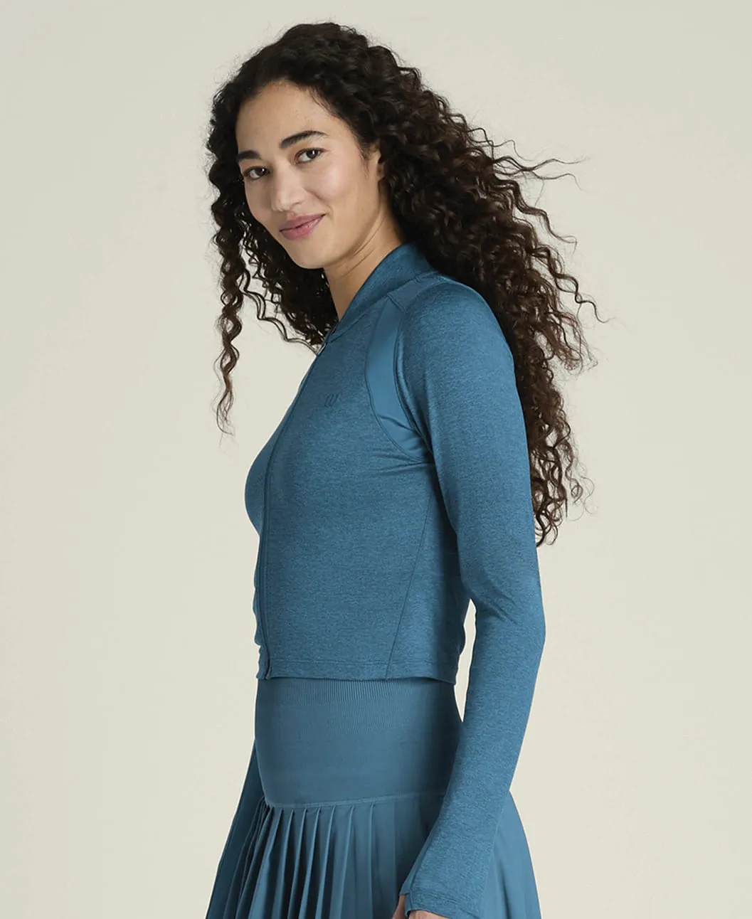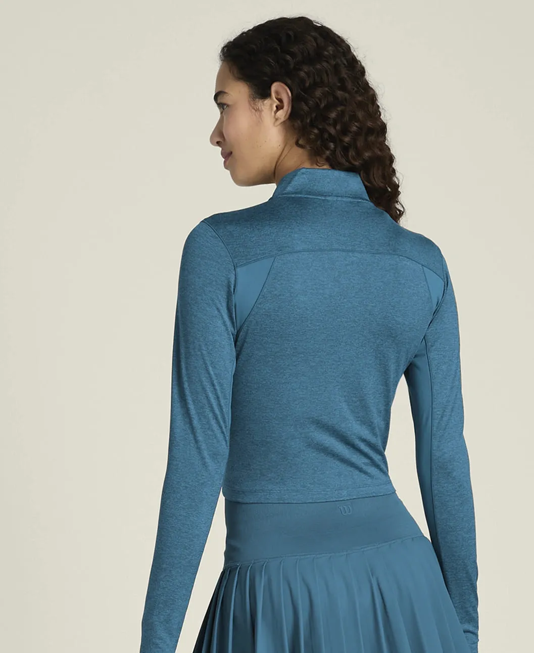 Облегающий укороченный крой подчёркивает силуэт и идеально сочетается с теннисными юбками и спортивными шортами. Высокий воротник обеспечивает дополнительное покрытие в области шеи.