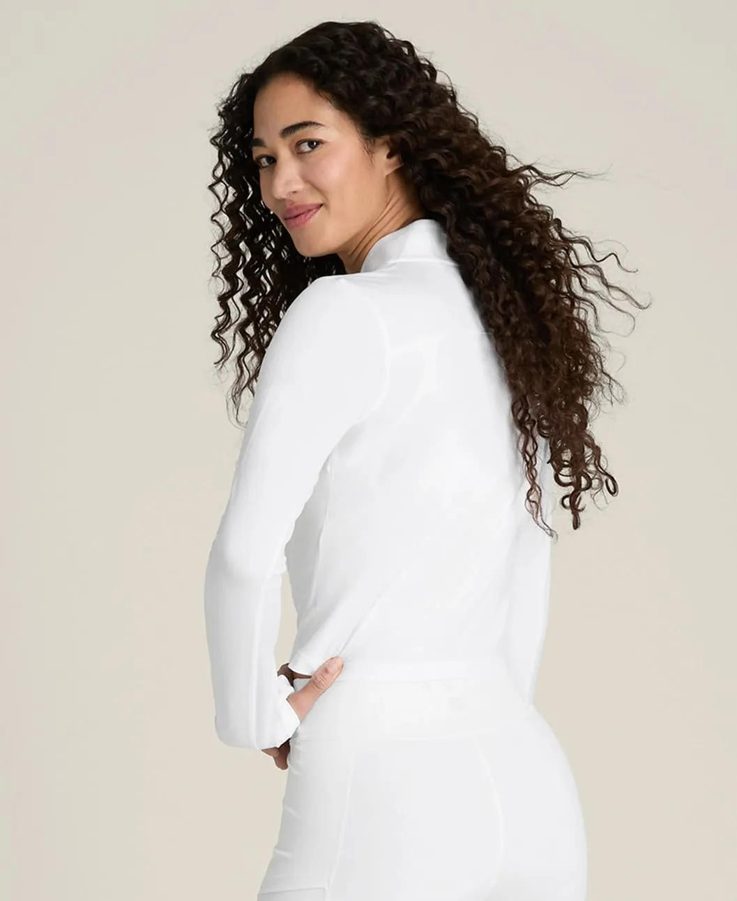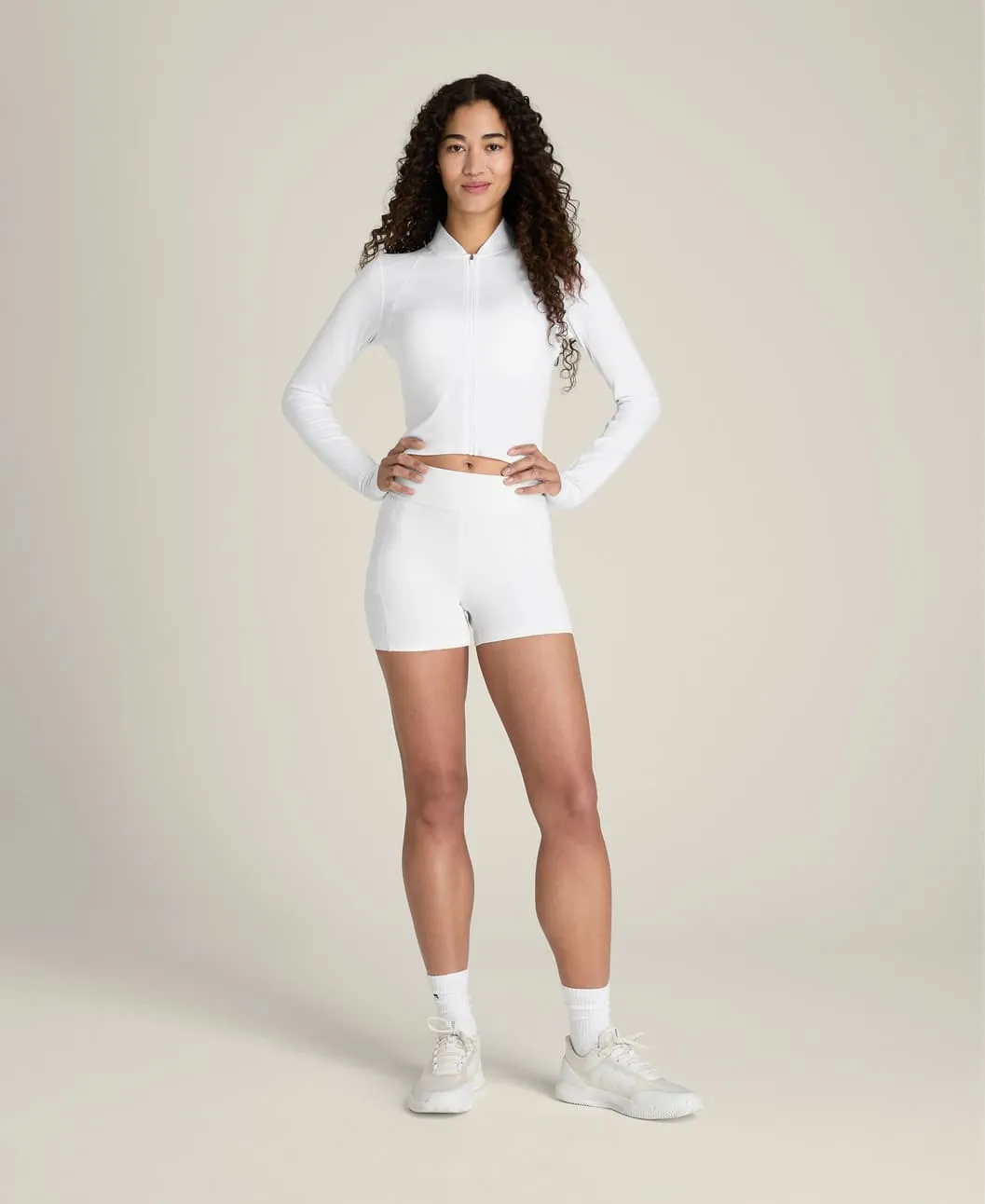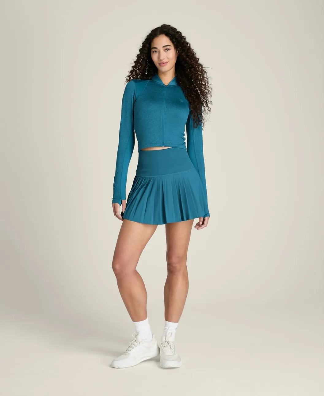 Облегающий укороченный крой подчёркивает силуэт и идеально сочетается с теннисными юбками и спортивными шортами. Высокий воротник обеспечивает дополнительное покрытие в области шеи.
