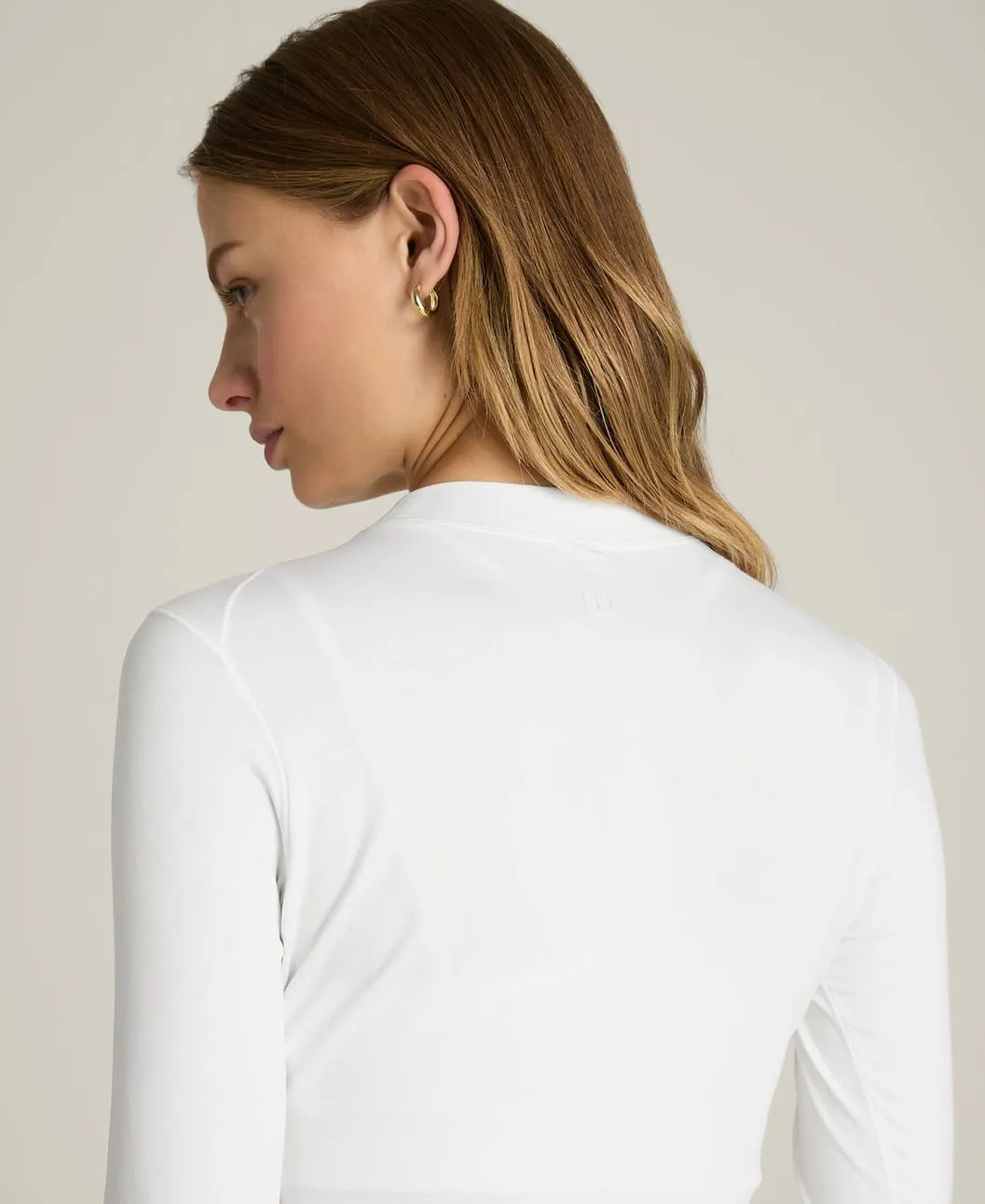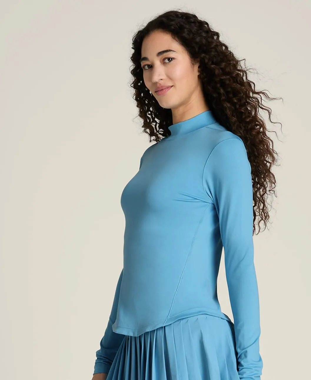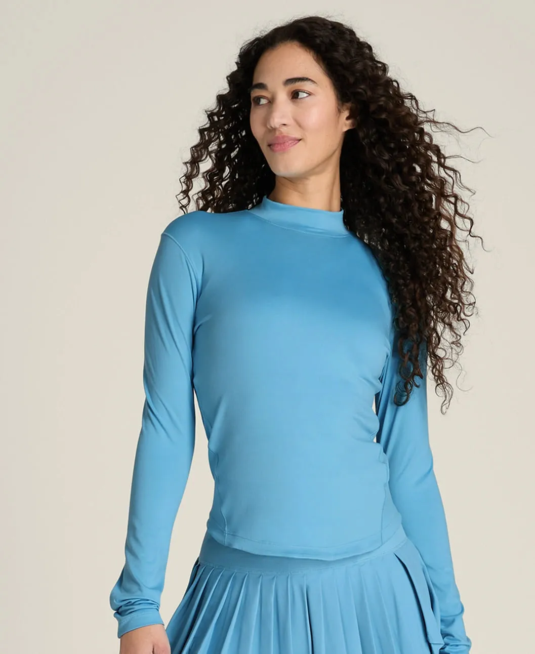 Высокий ворот (mockneck) обеспечивает дополнительное покрытие в области шеи и помогает защитить кожу от солнца во время длительных тренировок на открытом воздухе.
