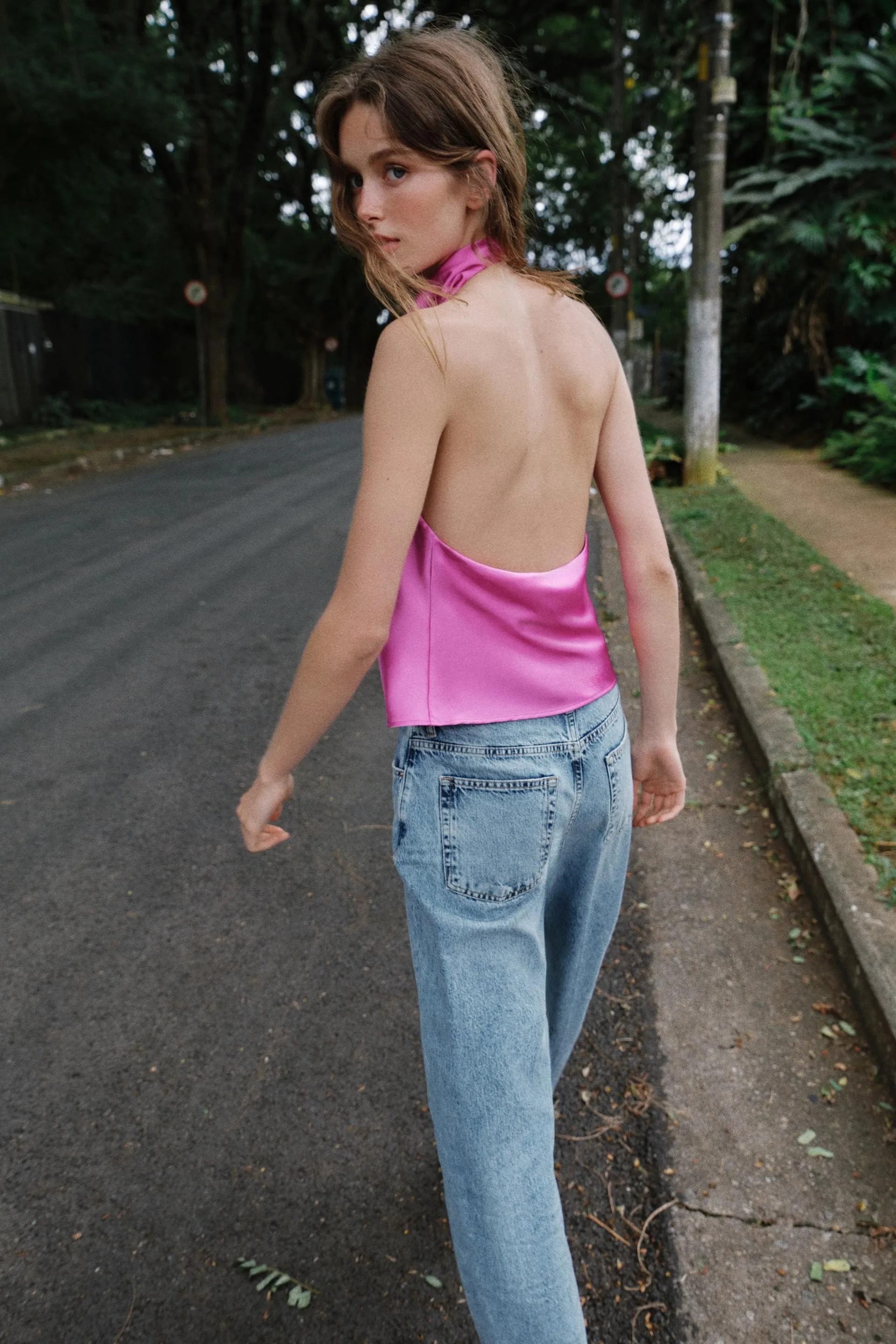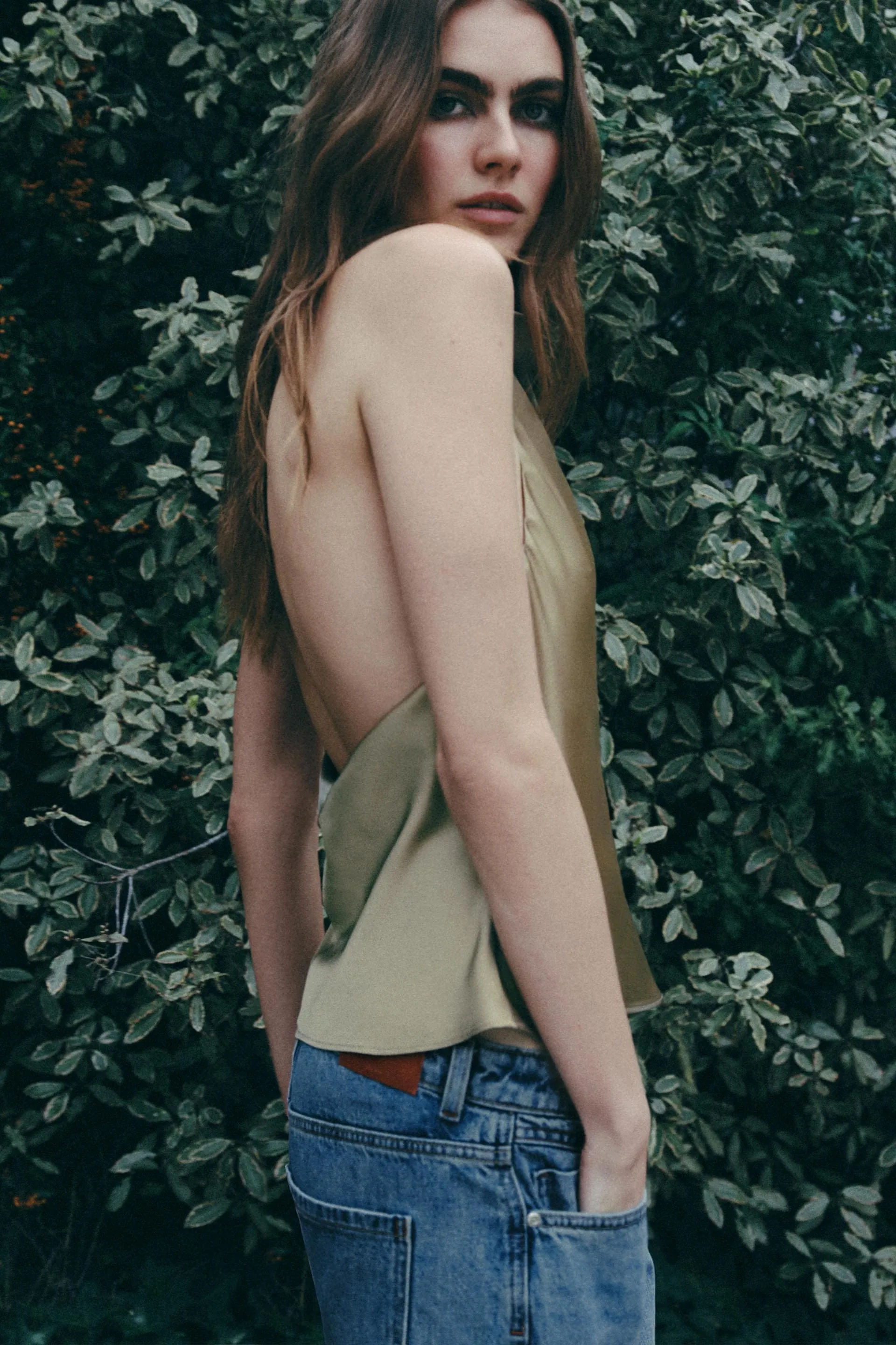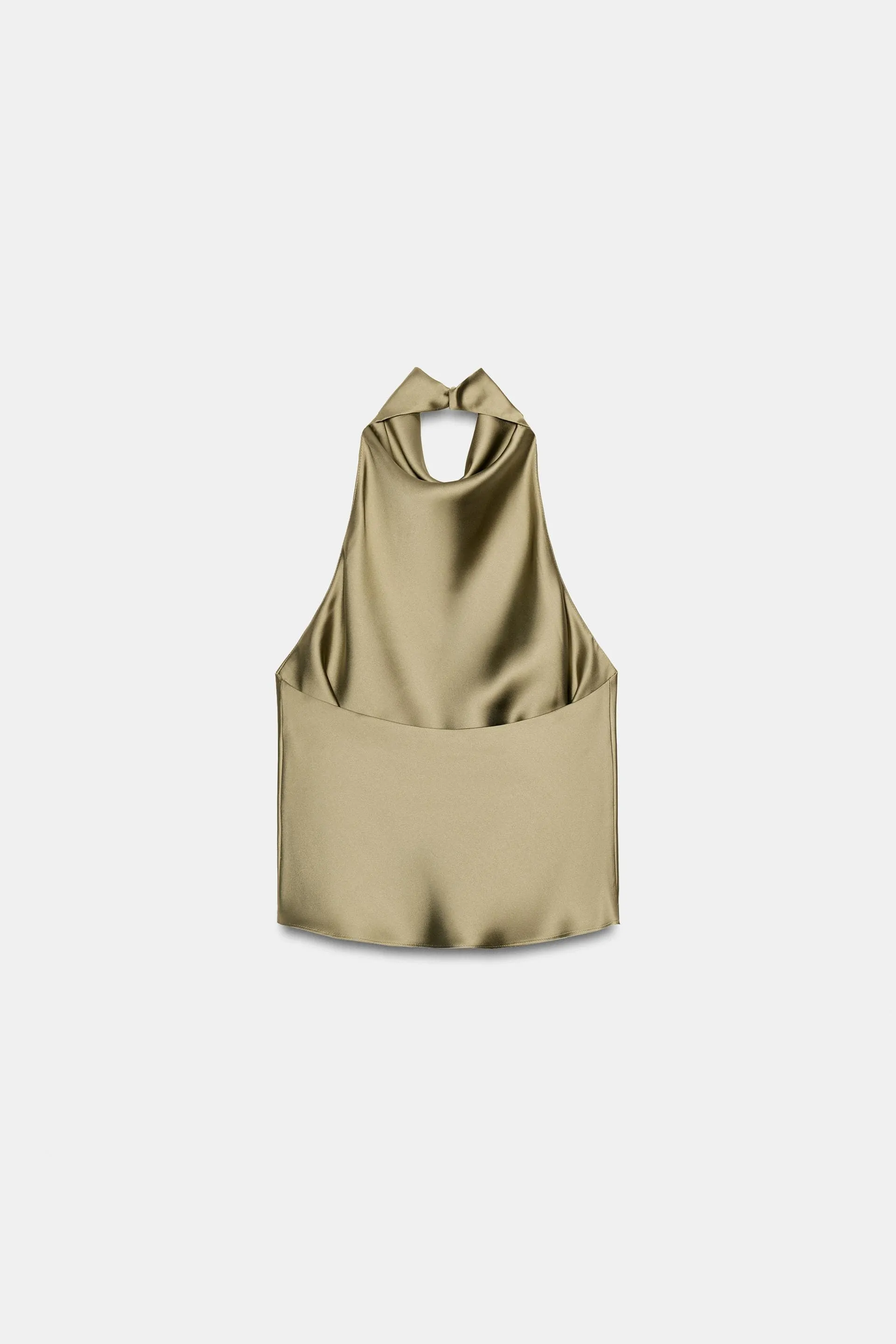 Атласный топ Zara с открытой спиной (Satin Effect Halter Top)