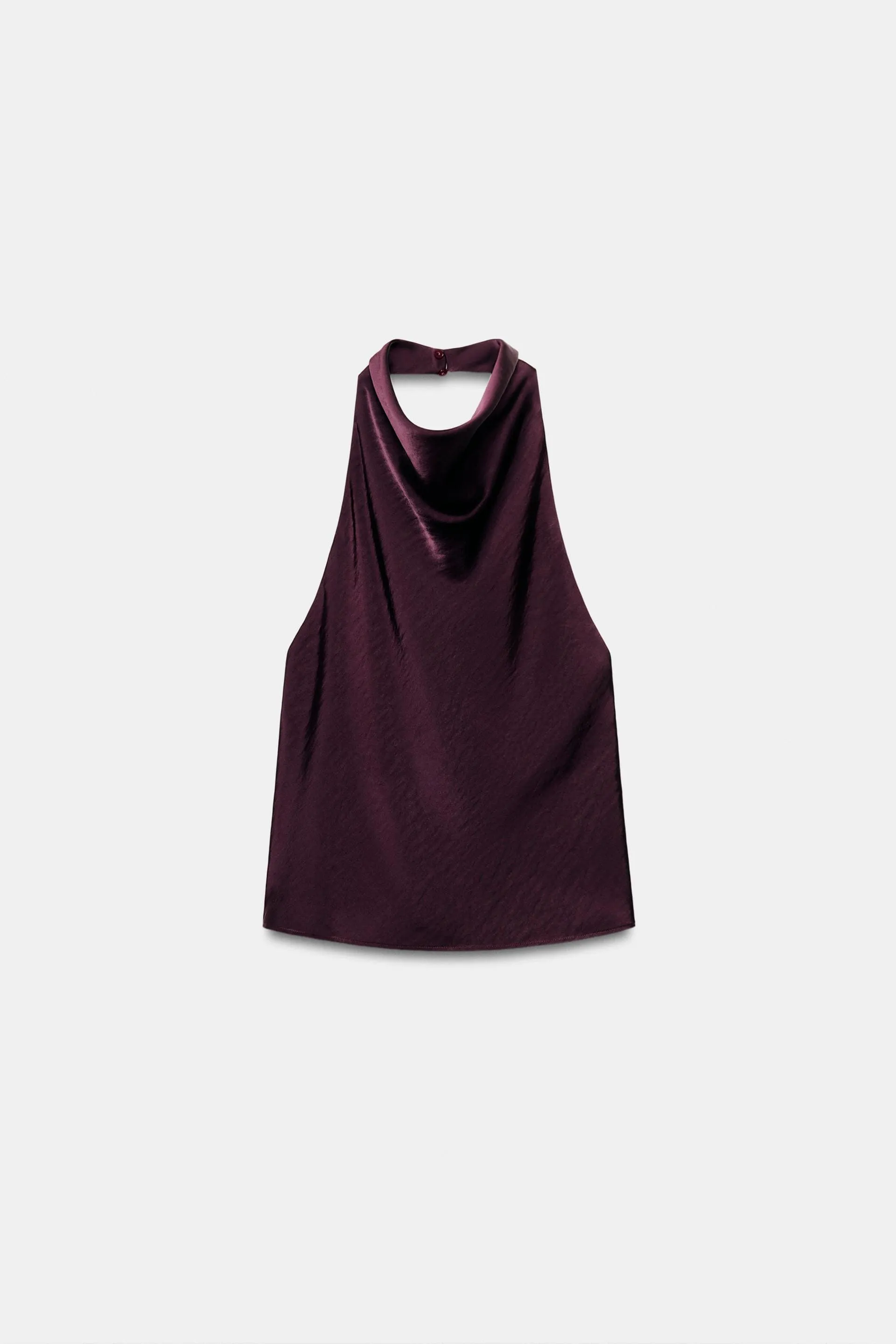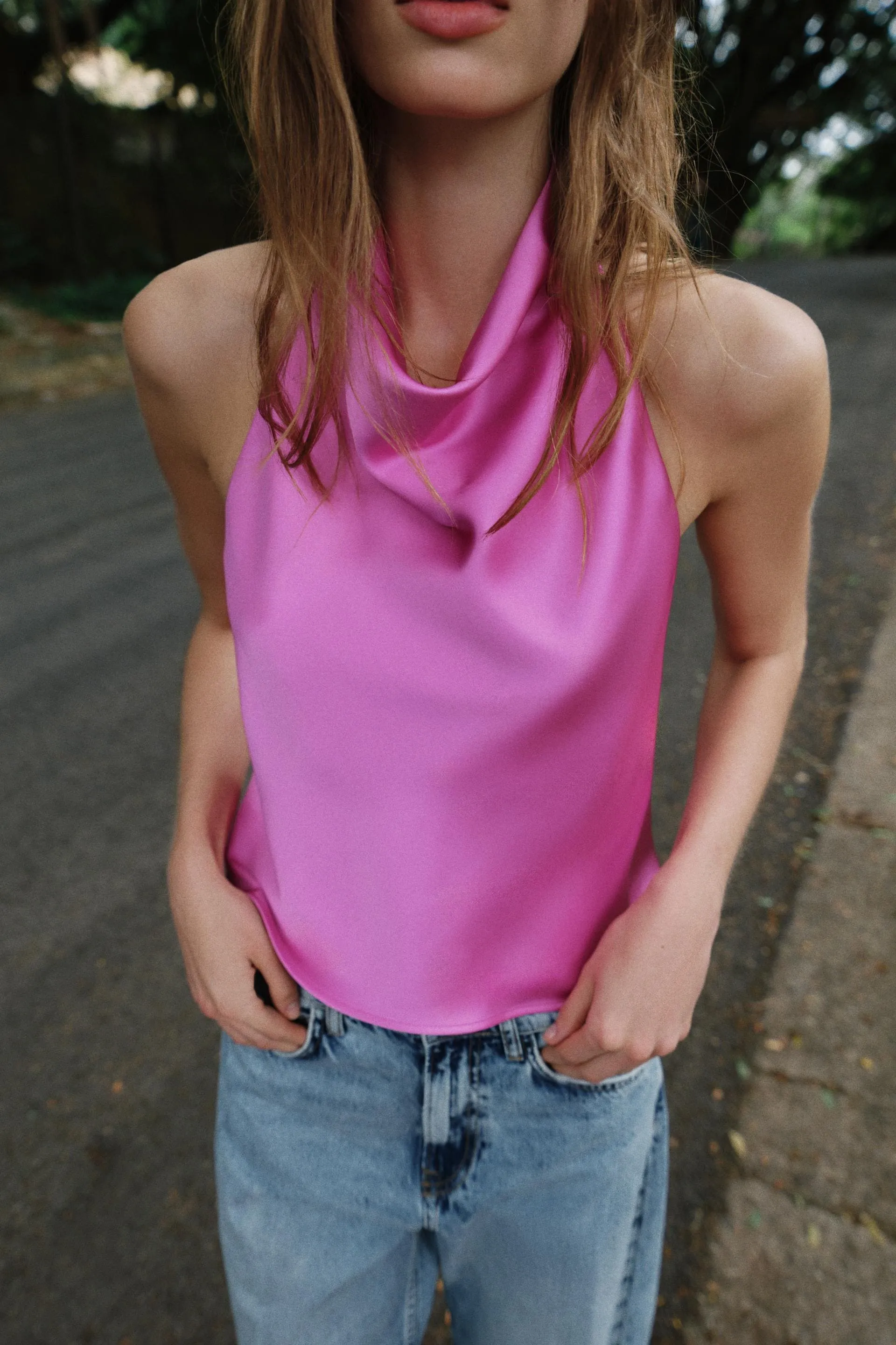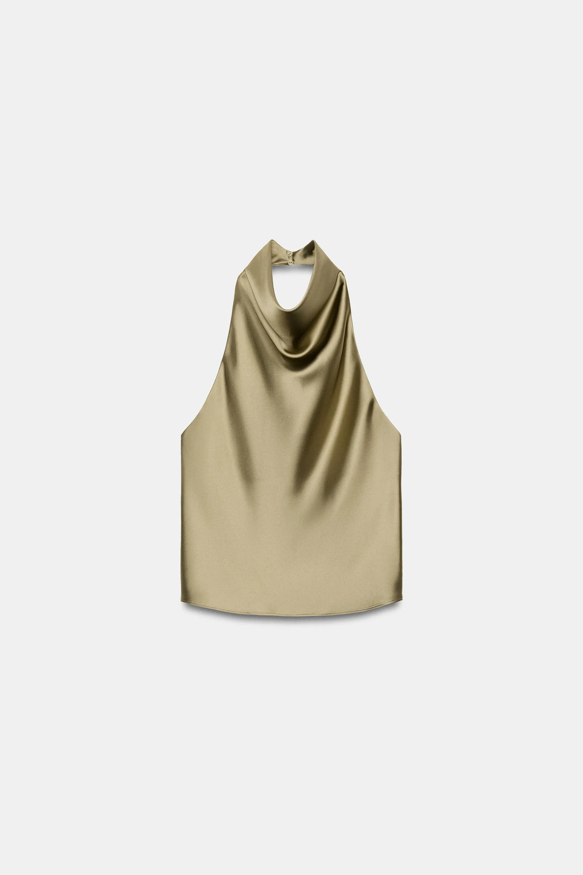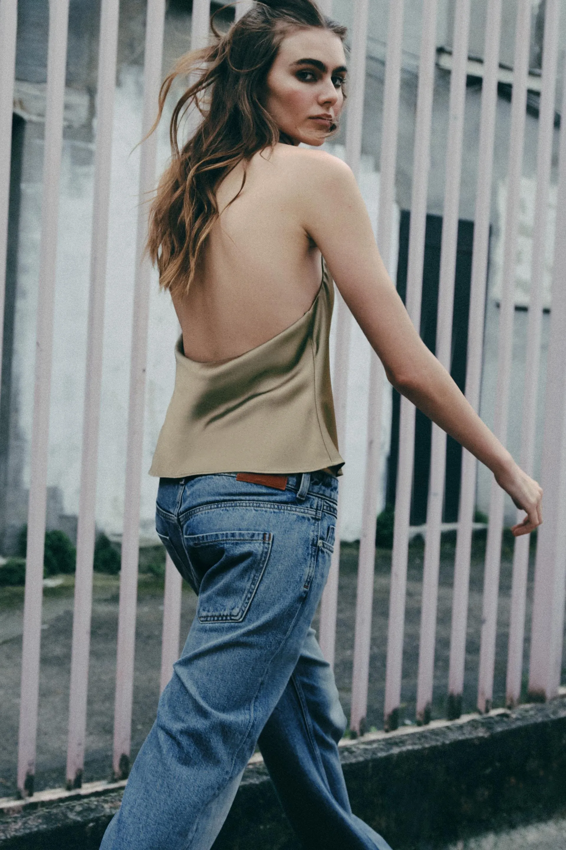 Атласный топ Zara с открытой спиной (Satin Effect Halter Top)
