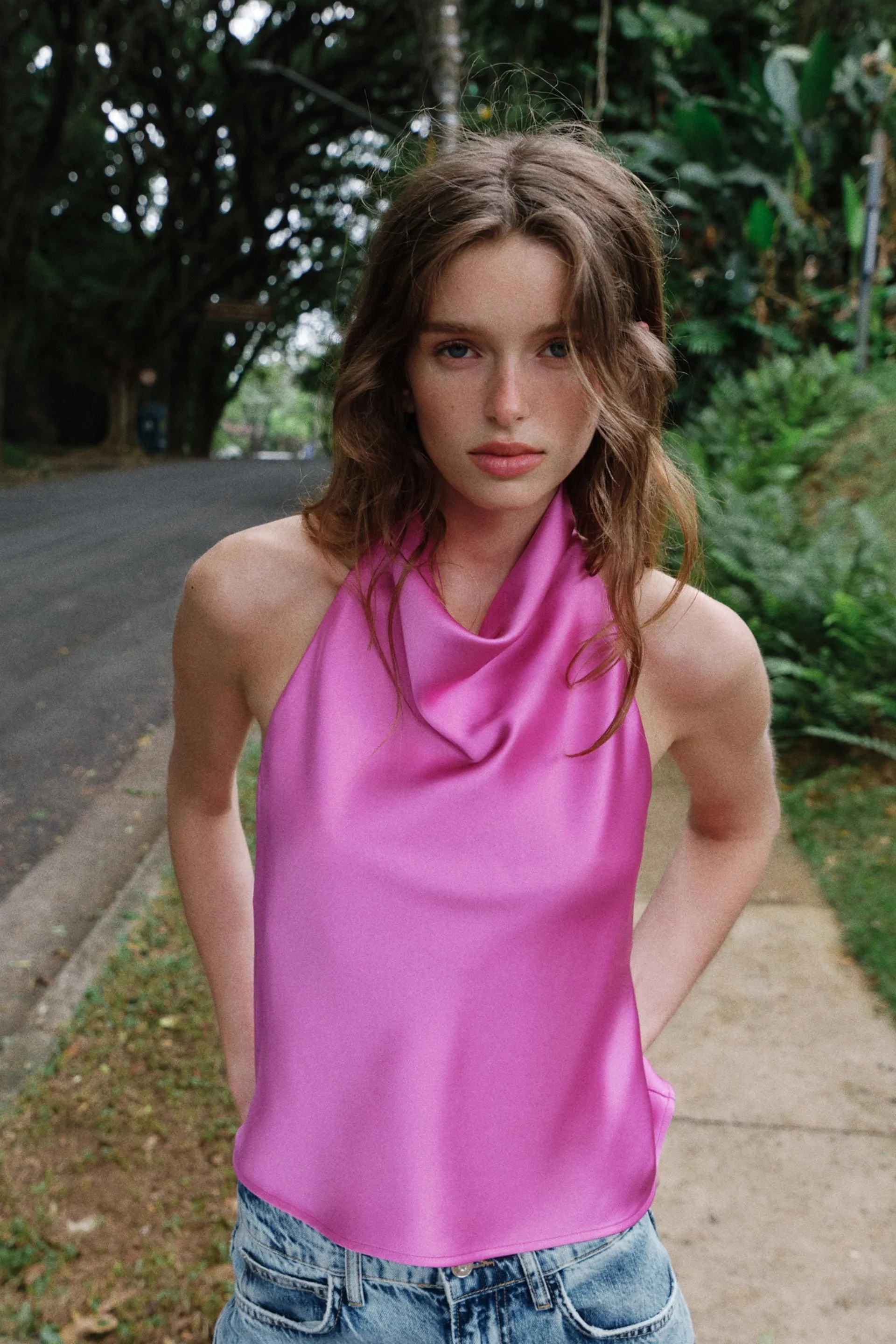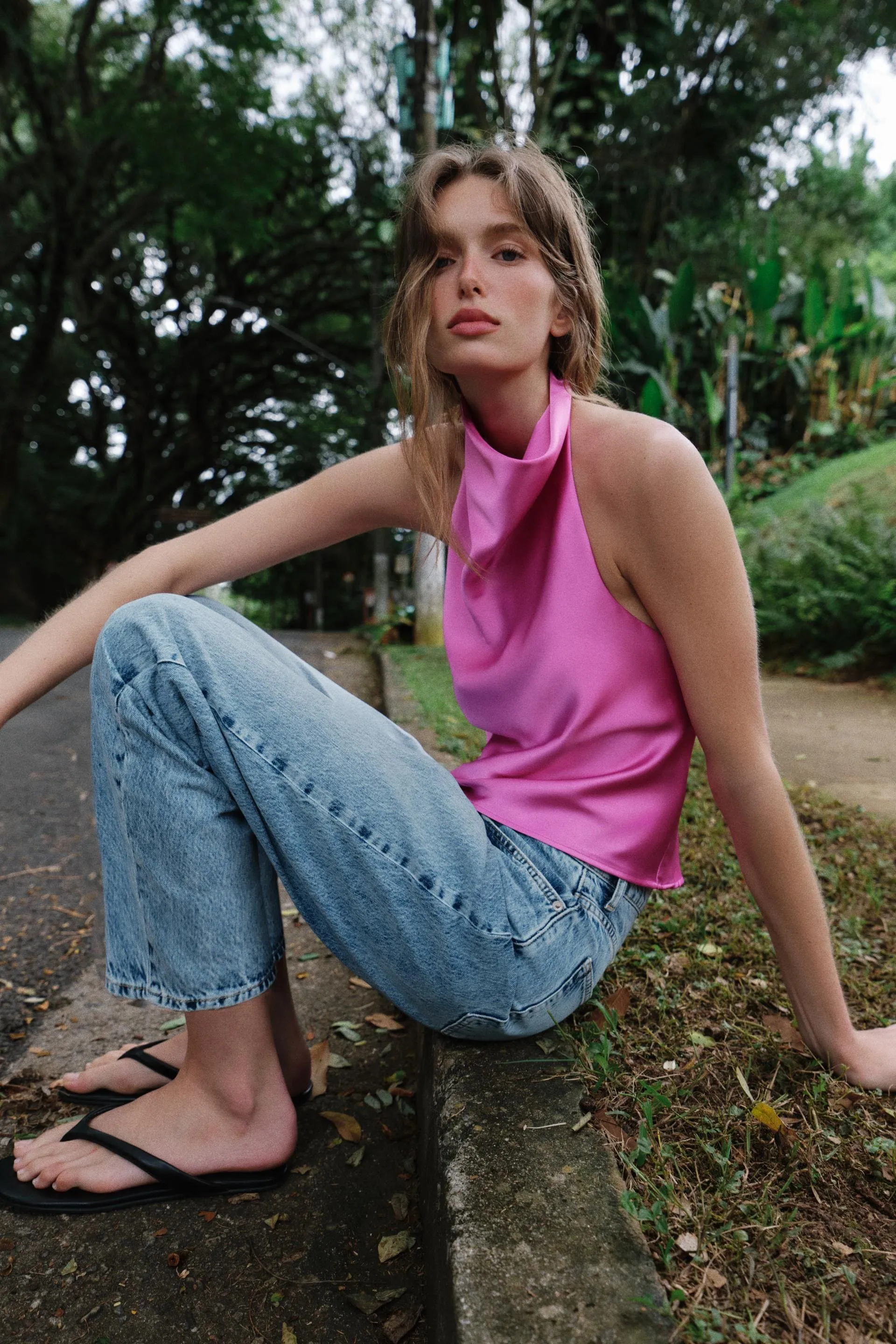 Satin Effect Halter Top — элегантный топ с атласным эффектом и открытой спиной, который мгновенно добавляет образу вечерний вайб. Лаконичный силуэт делает его универсальным для города, свиданий и летних выходов.