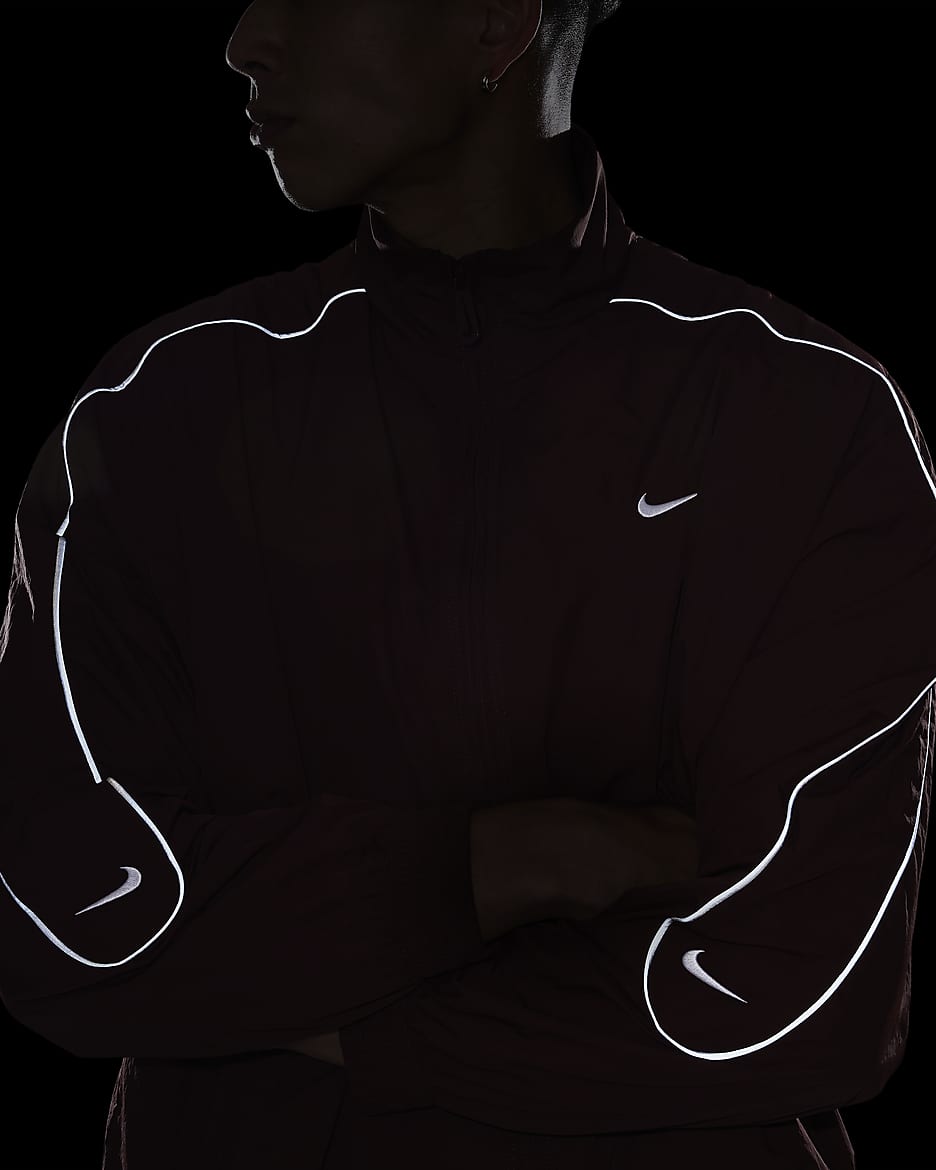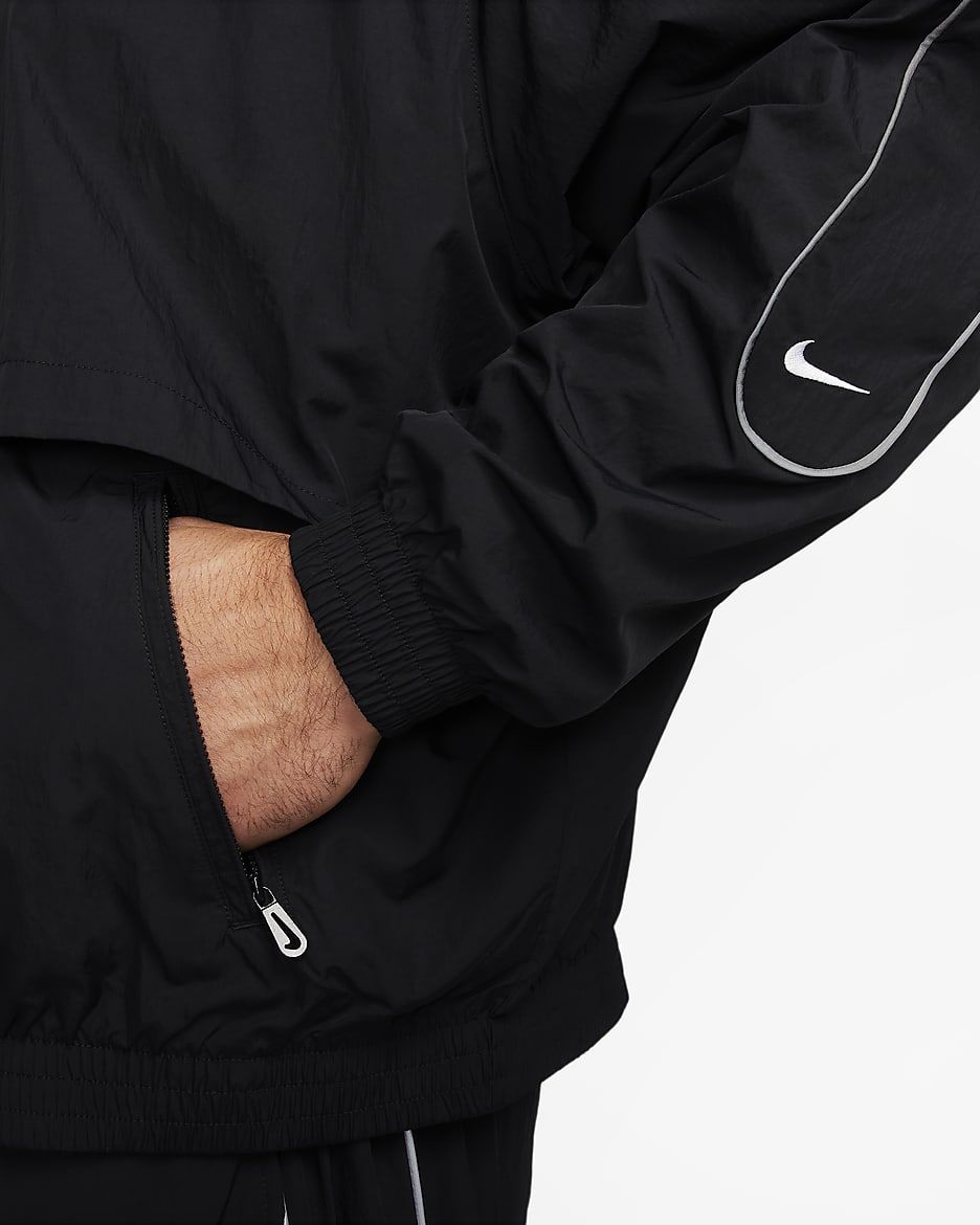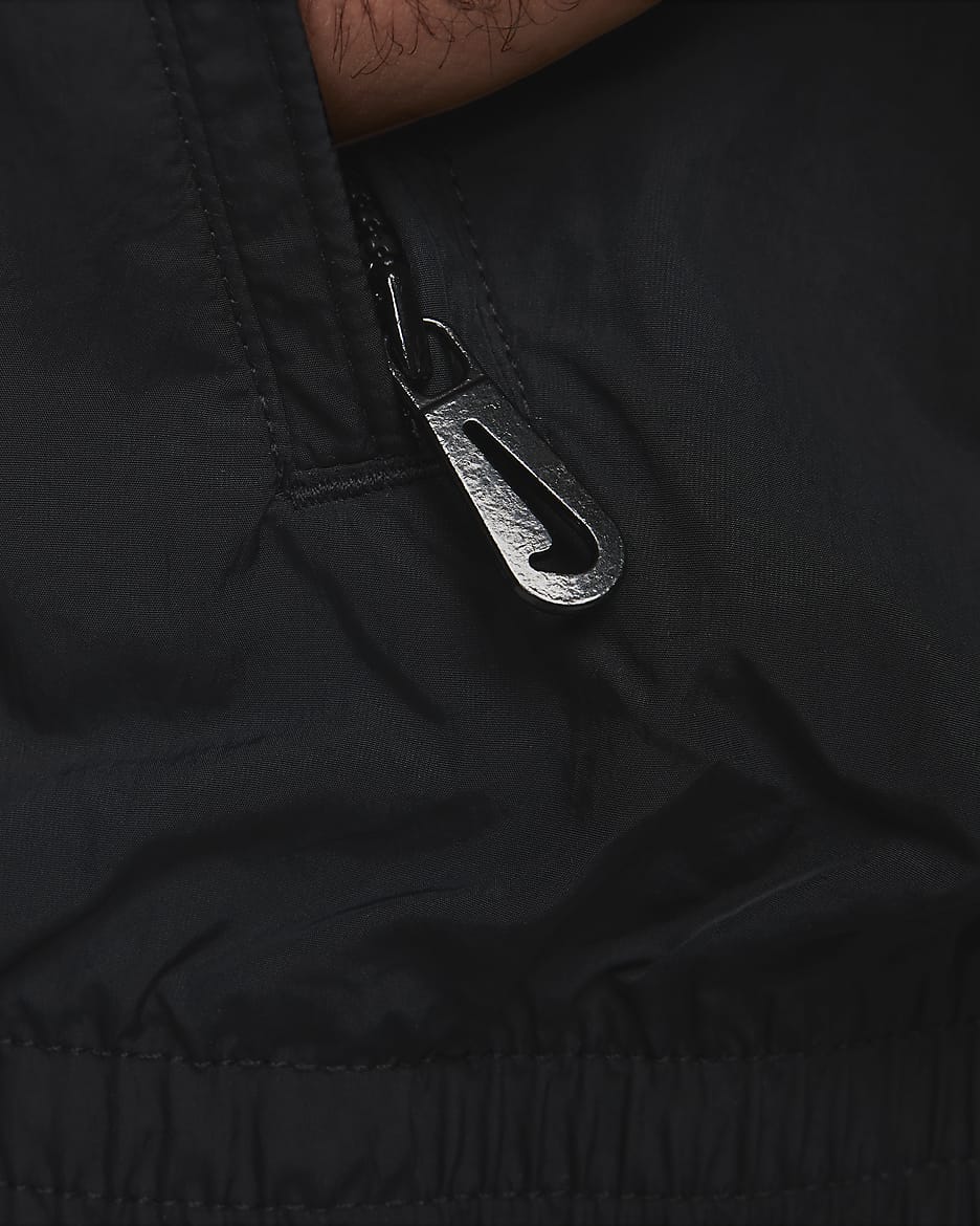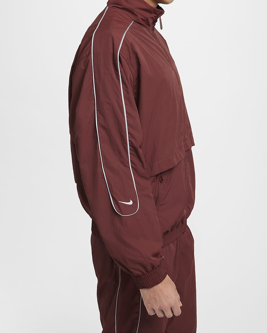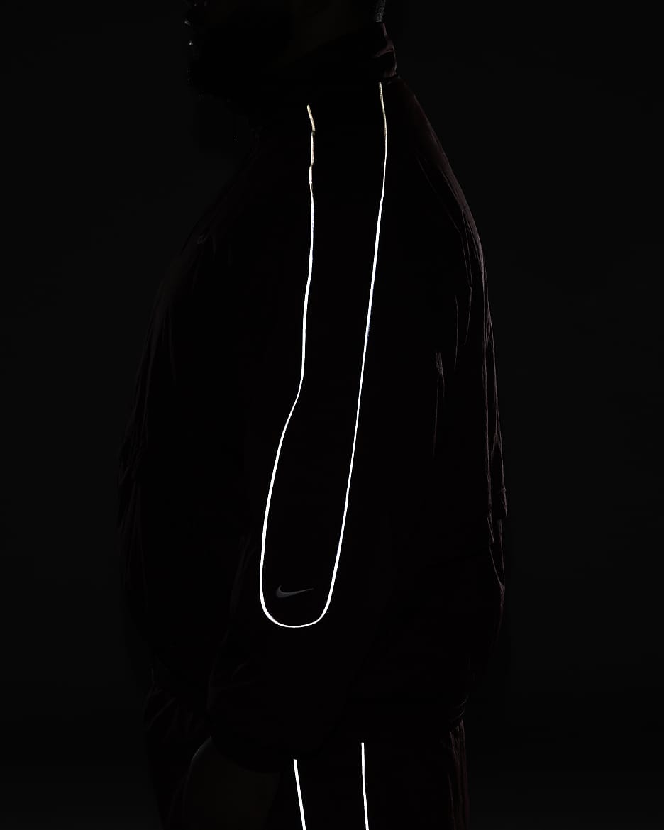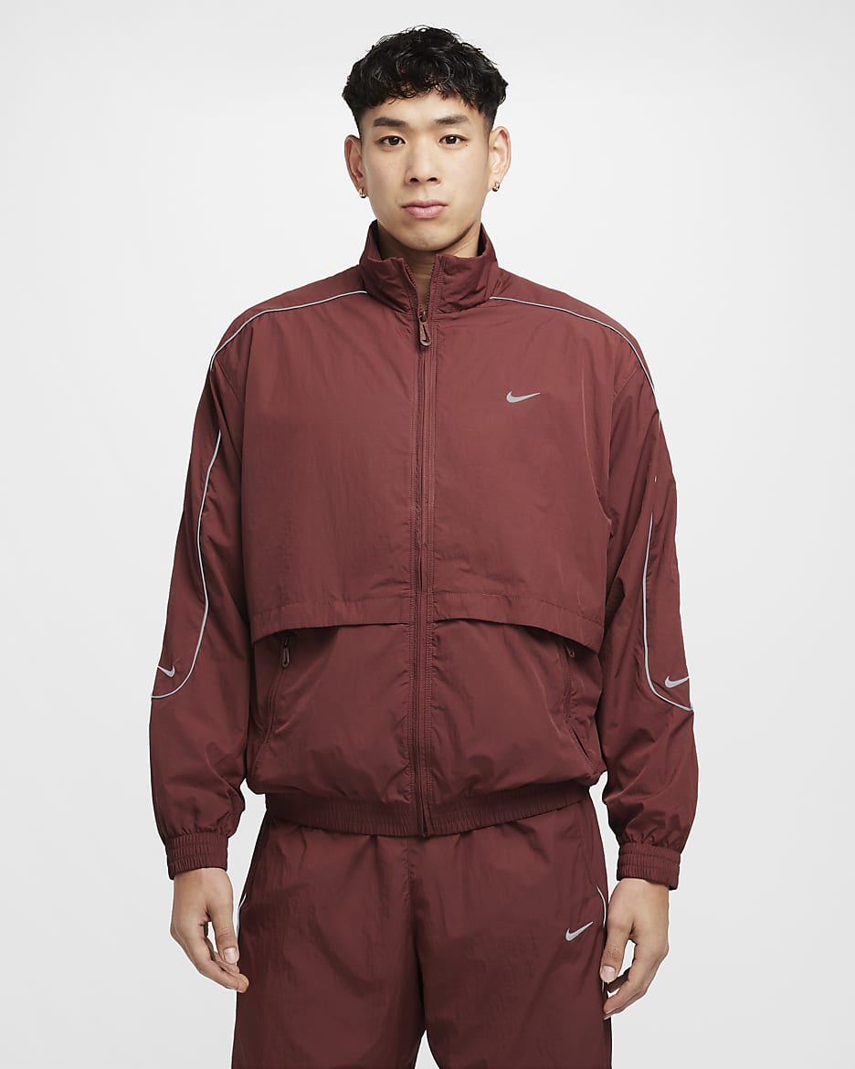 День или ночь — наша спортивная куртка Solo Swoosh подарит вам чистый, классический стиль, характерный для коллекции Solo Swoosh. Легкая ткань придаёт свежесть, а светоотражающие элементы добавляют выразительный акцент. Для цельного образа — от порога дома до магазина пластинок — сочетайте её с подходящими спортивными брюками Solo Swoosh.