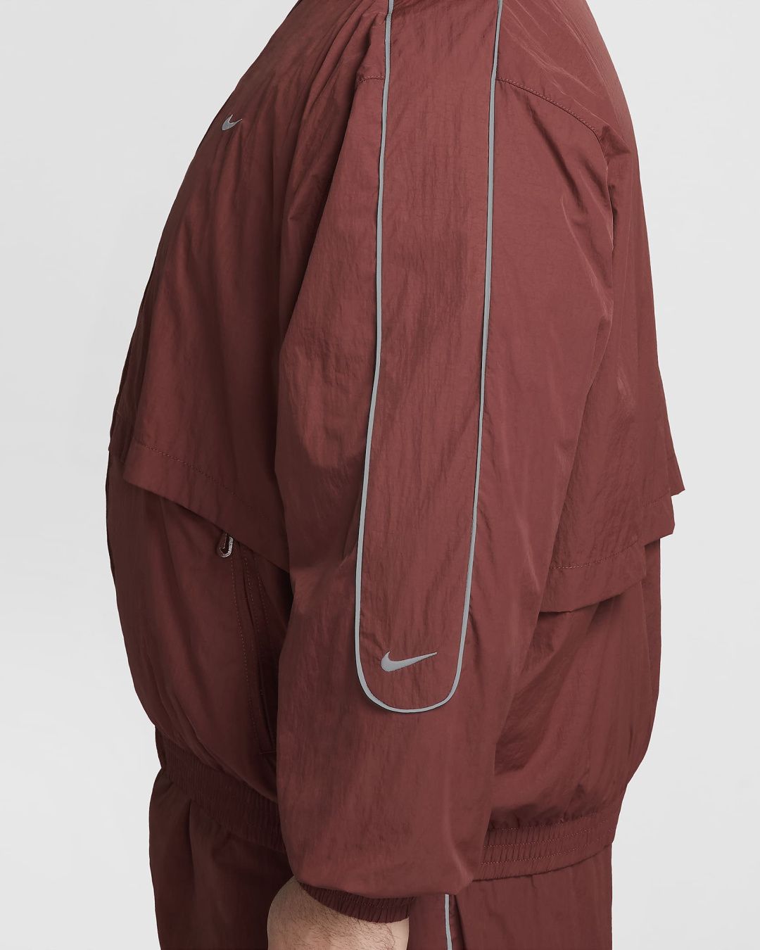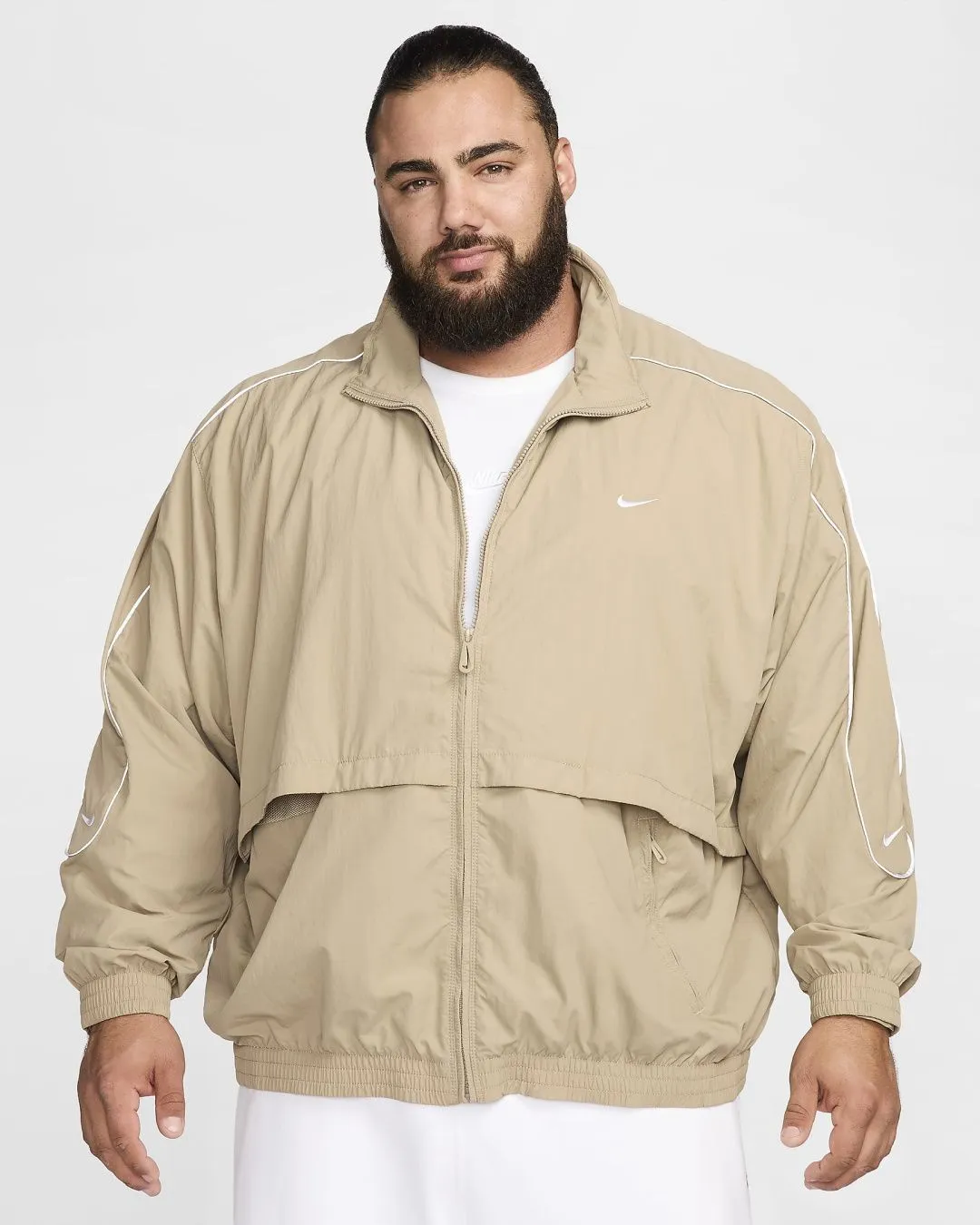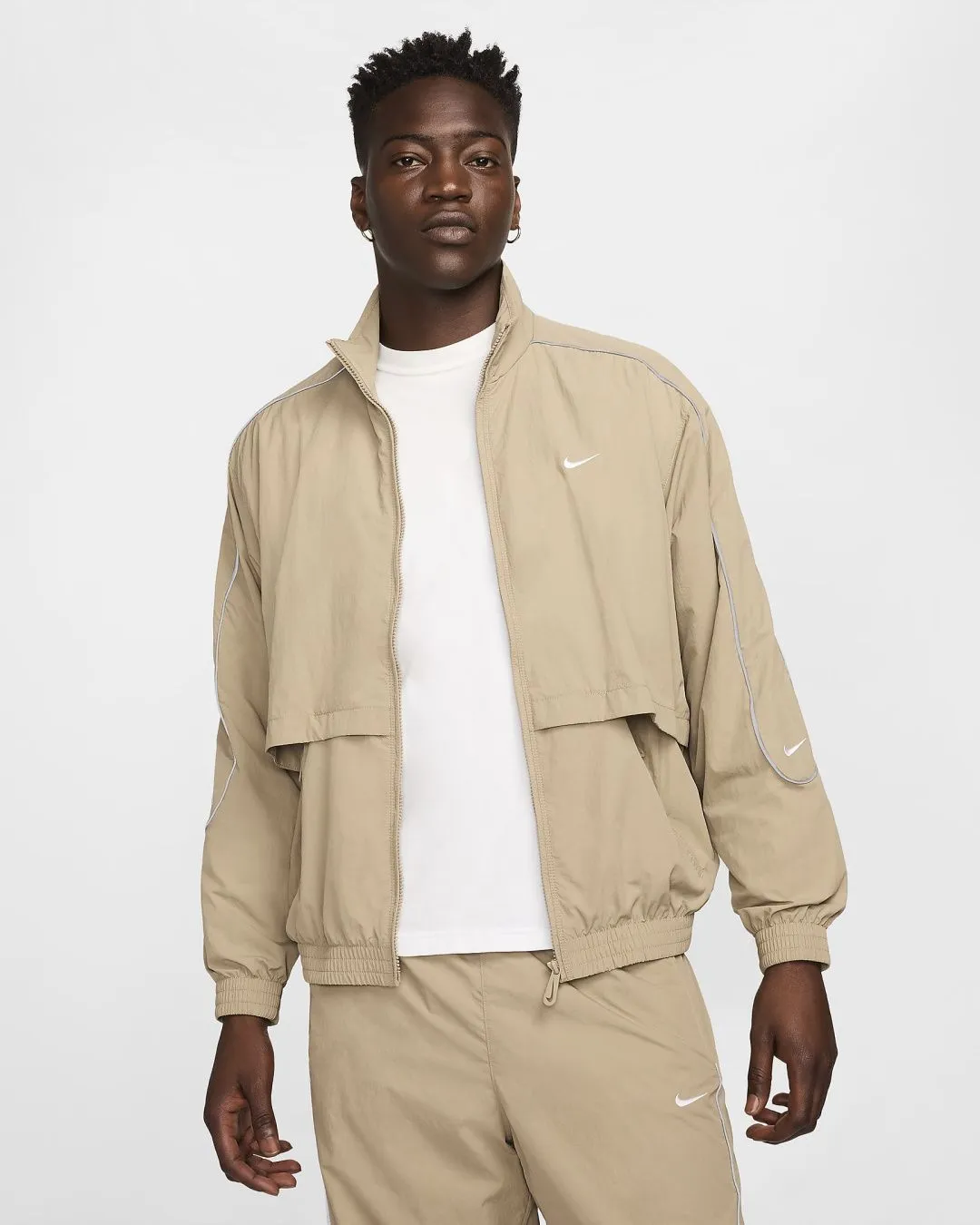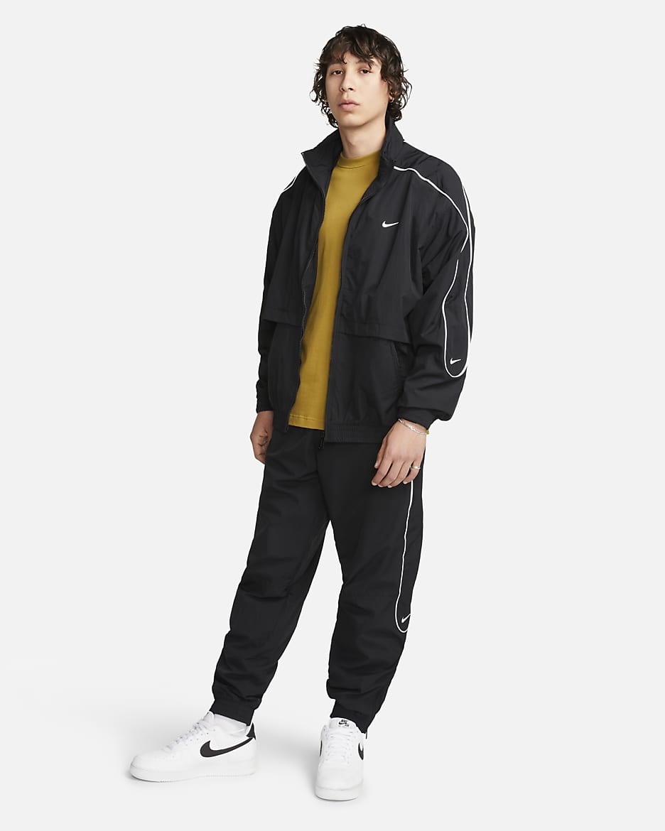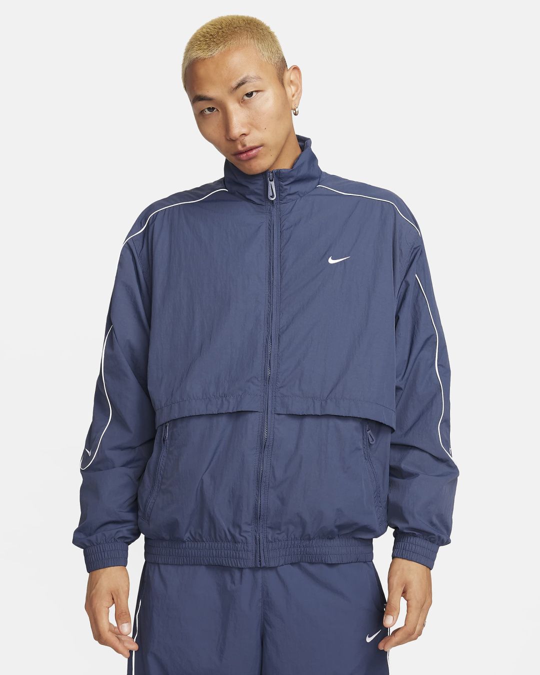 День или ночь — наша спортивная куртка Solo Swoosh подарит вам чистый, классический стиль, характерный для коллекции Solo Swoosh. Легкая ткань придаёт свежесть, а светоотражающие элементы добавляют выразительный акцент. Для цельного образа — от порога дома до магазина пластинок — сочетайте её с подходящими спортивными брюками Solo Swoosh.